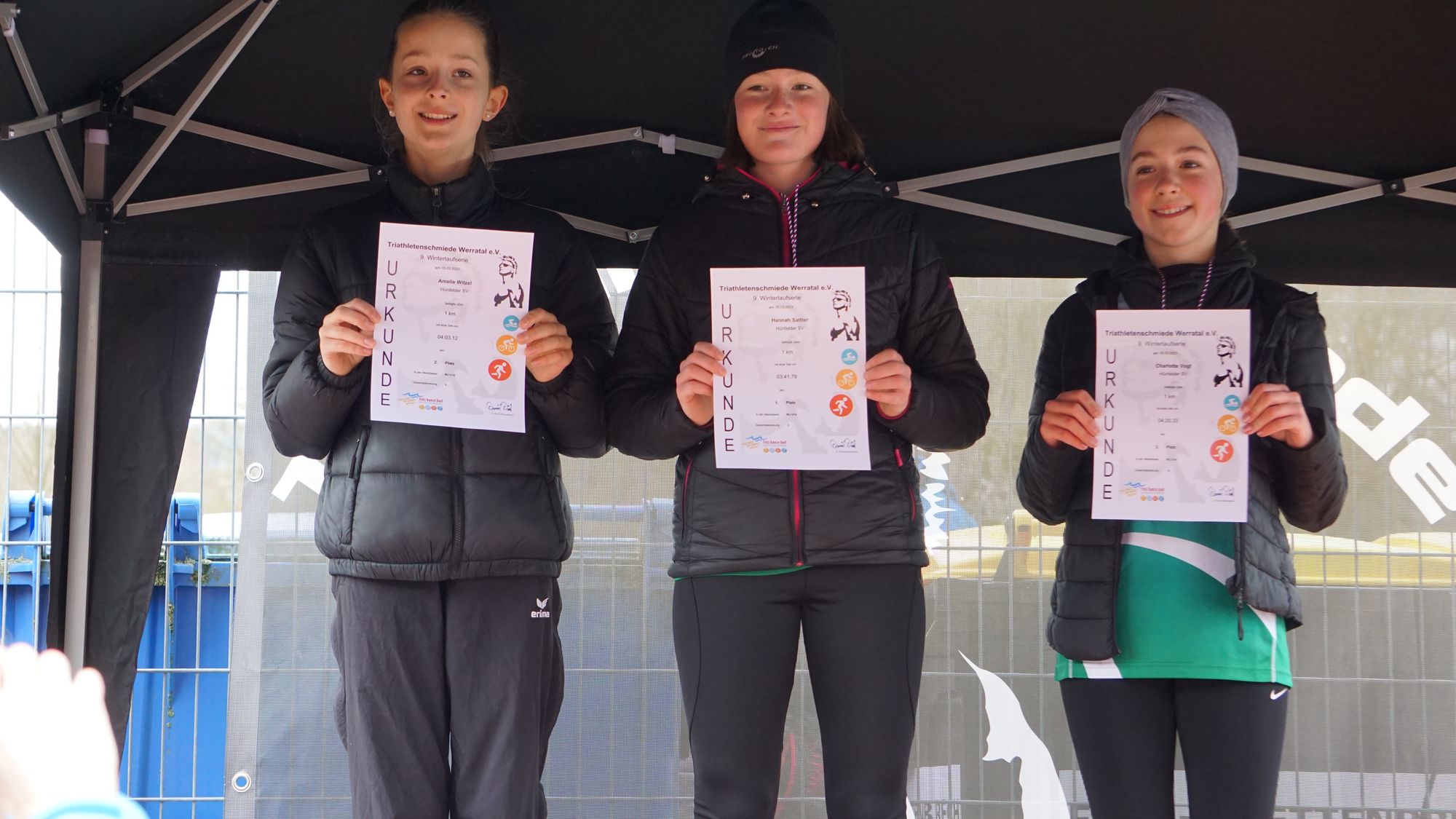 Mit dabei waren vom Hünfelder SV auf der 1-Kilometer-Strecke sage und schreibe 17 Läuferinnen und Läufer. Und die Bilanz kann sich wahrlich sehen lassen. Sowohl bei den Mädels wie bei den Jungs gingen in der Gesamtwertung die ersten 3 Plätze jeweils an unsere Athleten. In den Altersklassen U8, U10 und U12 gab es von jeweils 6 maximal möglichen Platzierungen „5“ erste, „5“ zweite und „2“ dritte Plätze. Und schaut man sich dann die gelaufenen Zeiten näher an, dann stimmt einen das schon froh. Im Jahr 2020 wurde die 4-Minuten-Marke in den ersten beiden Läufen der damaligen Winterlaufserie 2x unterboten, heute von unseren Athleten 7x; die damalige Bestzeit 5x. Und wir hatten neben unseren etablierten Kräften auch wieder ein paar Neue dabei; die schnupperten erste Wettkampfluft, machten erste Erfahrungen, hatten sichtlich Spaß und haben gezeigt was in ihnen steckt. Mit solch einem Nachwuchs kann man zuversichtlich in die Zukunft schauen!