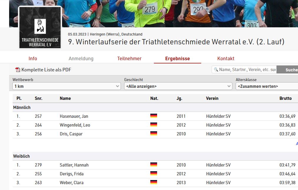 2. Lauf der Winterlaufserie 2023 in Heringen – Viele TOP-Platzierungen für die Leichtathleten vom Hünfelder SV