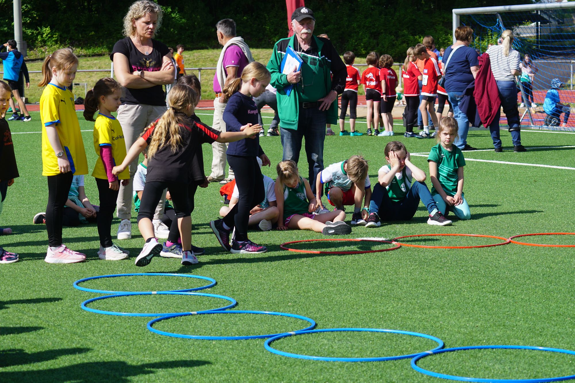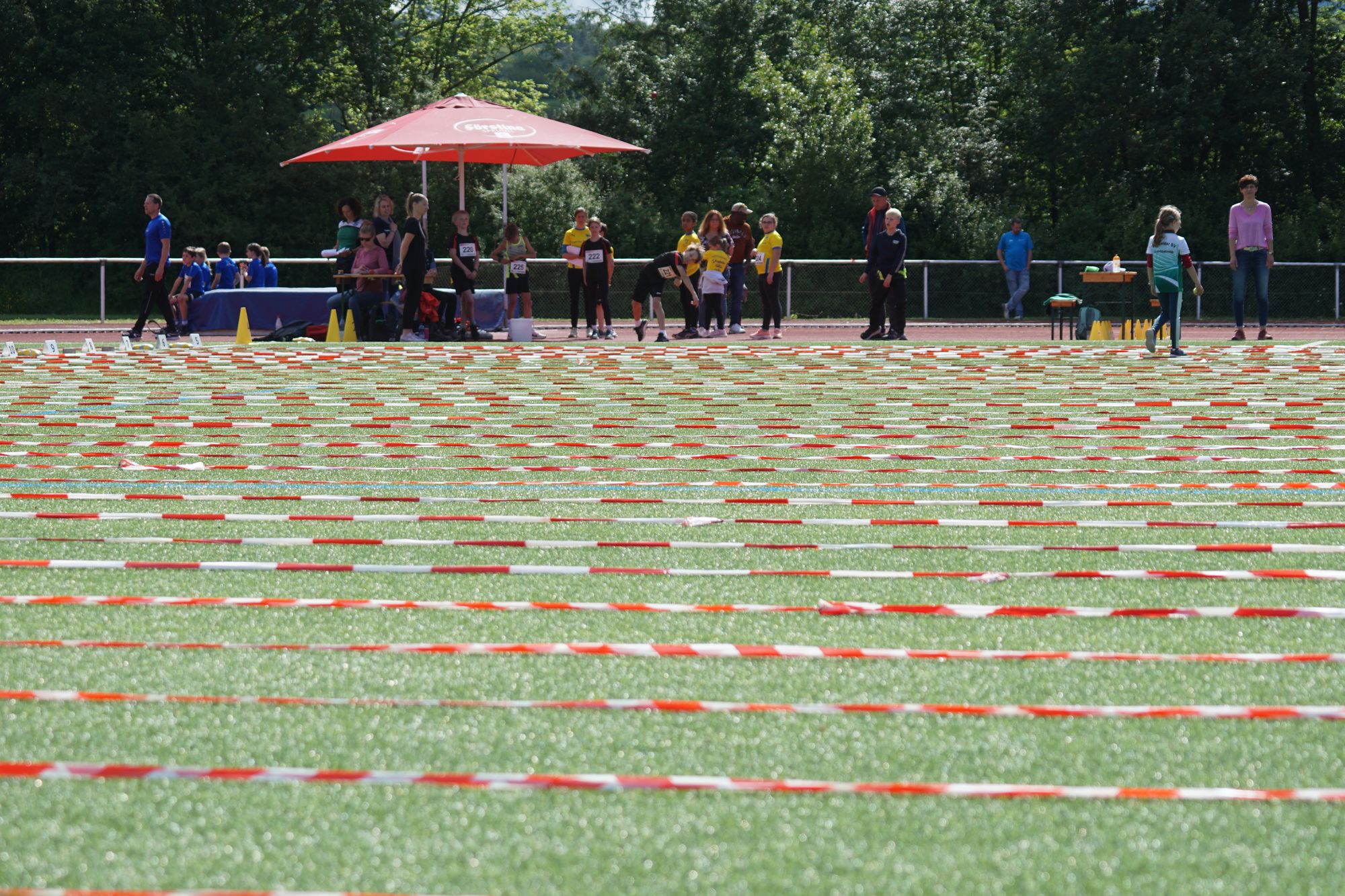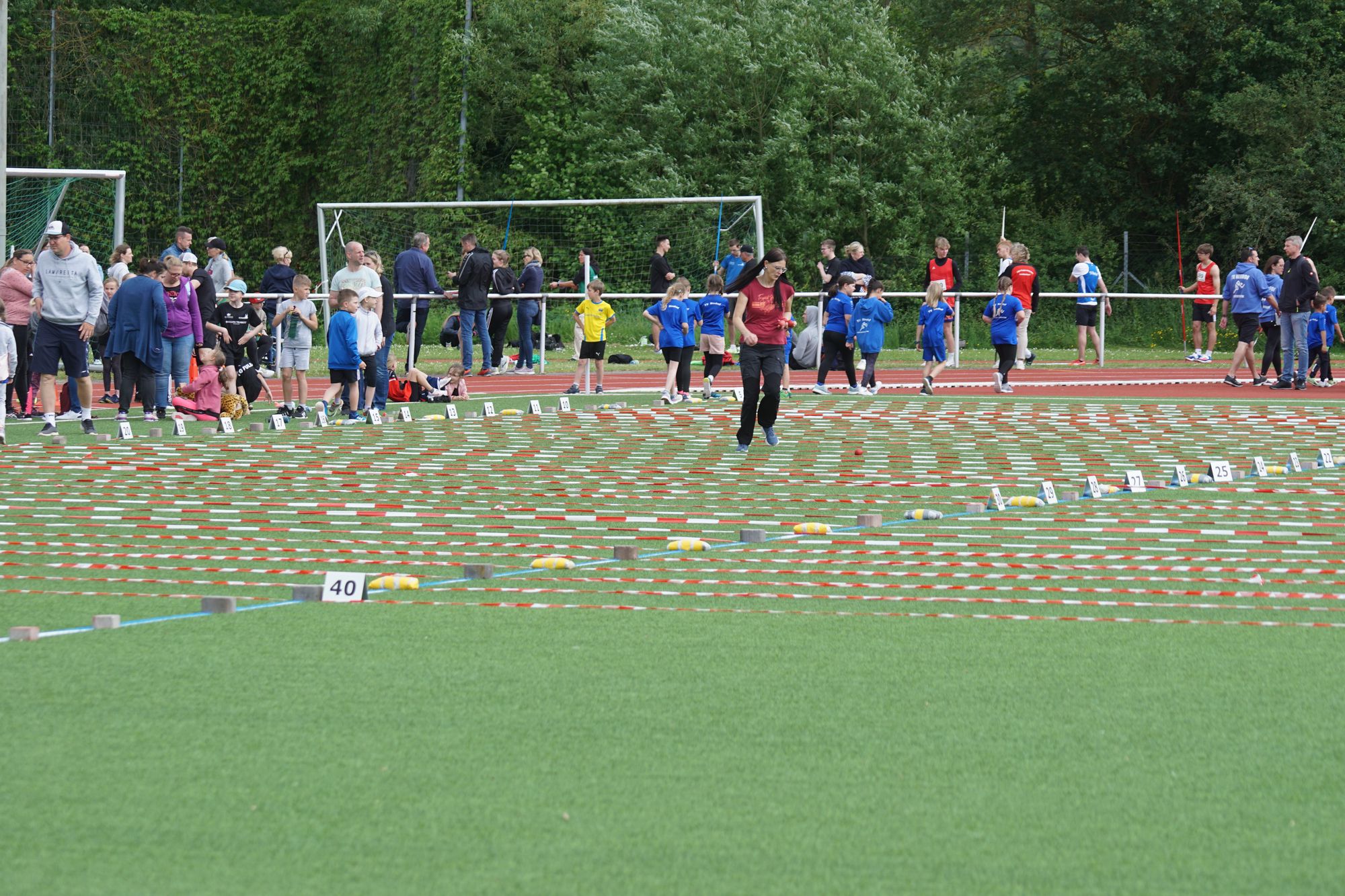 Nach der Staffel – bei dem Rennen haben auch schon viele zugesehen – geht es dann so richtig los. In der KiLa sind 34 Mannschaften (7 x U8, 15 x U10, 12 x U12) zwei mehr als im vergangenen Jahr an den Start gegangen. Los ging es um 09:30 Uhr mit der KiLa U12, die KiLa U8 folgte nur 30 Minuten später und nach dem Mittag war dann die KiLa U10 dran. Daneben dann noch die angebotenen Disziplinen der klassischen Leichtathletik (Weitsprung, Kugelstoßen, Speerwurf, Ballwurf, Hürden, Sprint, Mittelstrecke, …); es war einiges zu sehen.