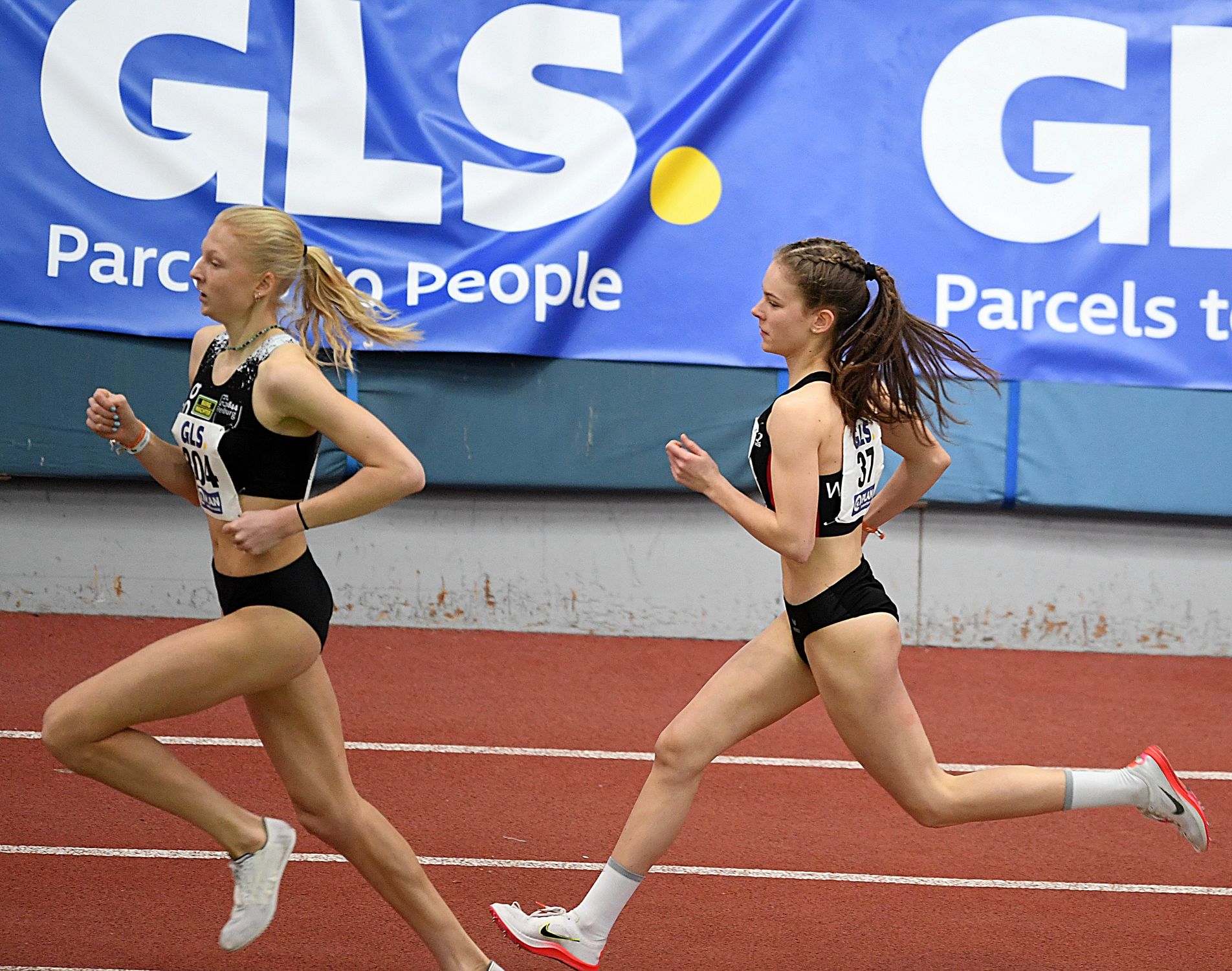 Das 3000-Meter-Bahngehen endete mit einem Doppelsieg für den SC Potsdam. Lena Sonntag zeigte in 14:42,53 Minuten ihrer Teamkollegin Lara Jolie Feigl (14:57,46 min.). Tabea Kiefer (Eintracht Frankfurt) hatte die fünfzehn Runden in der Halle nach 15:25,01 Minuten als Fünfte hinter sich gebracht.