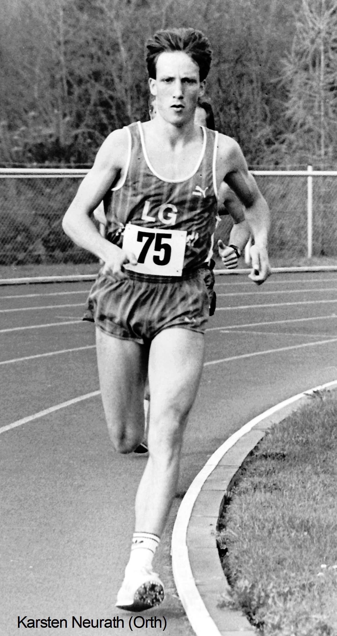Karsten Neurath: In 14:23,49 Minuten führt Karsten Neurath (LG Schwalmstadt) die „ewige“ Bestenliste des Kreises an. Jährlich trifft sich die DLV-Elite im Frühjahr beim Mini-Internationalen auf dem Oberwerth in Koblenz. Hier lief der Vater von Florian Orth, der bei der Heirat mit der Zahnarzttochter Ulrike Orth ihren Namen angenommen hat, im Mai 1986 diese Zeit. Zuvor gewann Neurath beim „Heimspiel“ im Schützenwald die Hessische Waldlauf-Meisterschaft der Junioren und erkämpfte in 1987 - ebenfalls im Feld der Junioren - in der heute noch gültigen Kreisrekordzeit von 9:09,78 Minuten den HLV-Meisterwimpel über 3000 Meter Hindernis. 1988 dann im Trikot des TV Gelnhausen in 14:17,46 die persönliche Bestzeit über 5000 Meter.