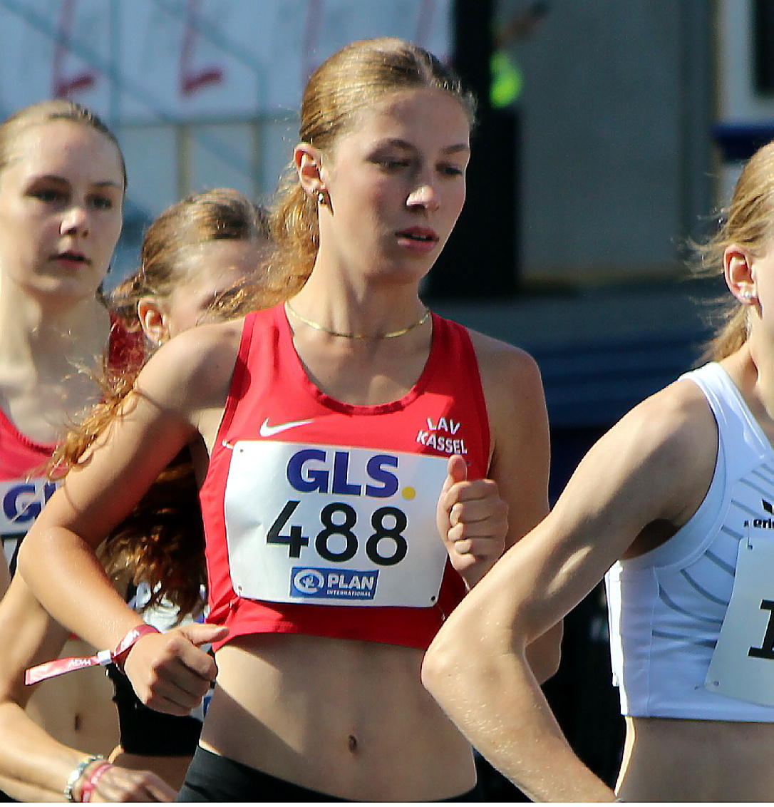 „Ich möchte um die Medaillen mitlaufen“. So äußerte sich Pauline Kleesiek (LAV Kassel) im Vorfeld dieser Titelkämpfe und setzte im Finale über 1500 Meter ihr Vorhaben gekonnt um. „Taktisch ist Pauline das Rennen sehr gut angegangen und hatte stets eine gute Position im Feld“, analysierte Trainer Michael Hocke den Auftritt der Herderschülerin. 220 Meter vor dem Ziel ging sie die entscheidende Attacke mit und sicherte sich in einem langgezogenen Finish in 4:32,97 Minuten den zweiten Bronzerang des Tages. Das war gegenüber dem Vorjahr eine Verbesserung um sechs Positionen.