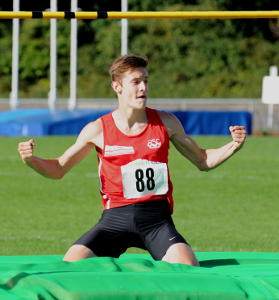 Nach fünf Disziplinen wird bei den Jugend-Blockwettkämpfen abgerechnet. Und nach den fünf Prüfungen lag Felix Bornhofen vorn, der Darmstädter war deutscher Meister. Bis es so weit war, befand er sich in Lauerstellung – bis zur letzten Station, dem Speerwerfen. Zum Auftakt seines Mehrkampfes sprintete Bornhofen die 100 Meter in 11,60 Sekunden, Platz vier. Die 80 Meter Hürden beendete er nach 11,23, nach zwei Disziplinen bedeutete das Rang fünf. Keine Veränderung in der Rangfolge brachte der Weitsprung. Bornhofen landete nach 6,23 Metern in der Grube. Dann kam der Hochsprung – und Felix Bornhofen griff an. In seiner Paradedisziplin übersprang er 1,88, keiner in Lübeck war besser. Und das war nicht einmal Bestleistung. Die liegt seit dem Juli bei 1,91.<ENDE/> Bei der U16-DM wurde Bornhofen mit 1,83 Vierter. Seine Leistung von Lübeck hätte vor wenigen Wochen in Köln den Einzeltitel bedeutet, der ging mit übersprungenen 1,86 weg. In Lübeck musste der Speerwurf die Entscheidung bringen. Felix Bornhofen lag bis dahin mit 2.515 Punkten hinter Devon Bender (MTG Mannheim/2.534) auf Rang zwei. Dann ließ der Hesse die Wurflanze auf 45,67 Meter fliegen und verbuchte weitere 609 Zähler. Benders Speer flog genau sieben Meter kürzer, 38,67, umgerechnet 557 Punkte. Den Mannheimer hatte Felix Bornhofen überholt. Doch Arthur Klem (SC DhfK Leipzig) machte es mit seiner Tagesbestweite von 55,70 noch einmal spannend. Von der Spitze verdrängen konnte er Felix Bornhofen aber nicht. Der Hesse siegte mit 3.124 Punkte, vor Klem (3.101) und Bender (3.091). Vor zwei Jahren hatte Christopher Nagorr vom LAZ Gießen diesen Titel gewonnen, damals hieß die Disziplin noch Sprint/Sprung. Seine Punktzahl 2013 in Markt Schwaben ist auch der Hessenrekord: 3.274.