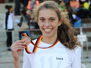 Luca Marie Jahn vom TV Flieden und die dritten Plätze im Block Lauf: Vor einem Jahr war das in der W14 der Fall, 2015 auch in der W15. Auf dem Weg zu ihren 2.670 Zählern in Lübeck markierte sie zwei Tagesbestleistungen, 12,82 über 80 Meter Hürden und 53,00 mit dem Ball. Dazu kamen 13,73 über 100 Meter, 4,89 im Weitsprung und 7:09,70 zum Abschluss über 2.000 Meter. Johanna Berrens (SV Steinheim/2.736) wiederholte ihren W14-Sieg aus dem Vorjahr. Platz zwei belegte Karen Schöttler (Dresdner SC 1898/2.716). Ebenfalls in den Top Acht platziert: Svenja Sommer (TV Groß-Zimmern/2.610) als Fünfte und Sophie Poluschkin (LG VfL/SSG Bensheim/2.563) auf Rang sieben.