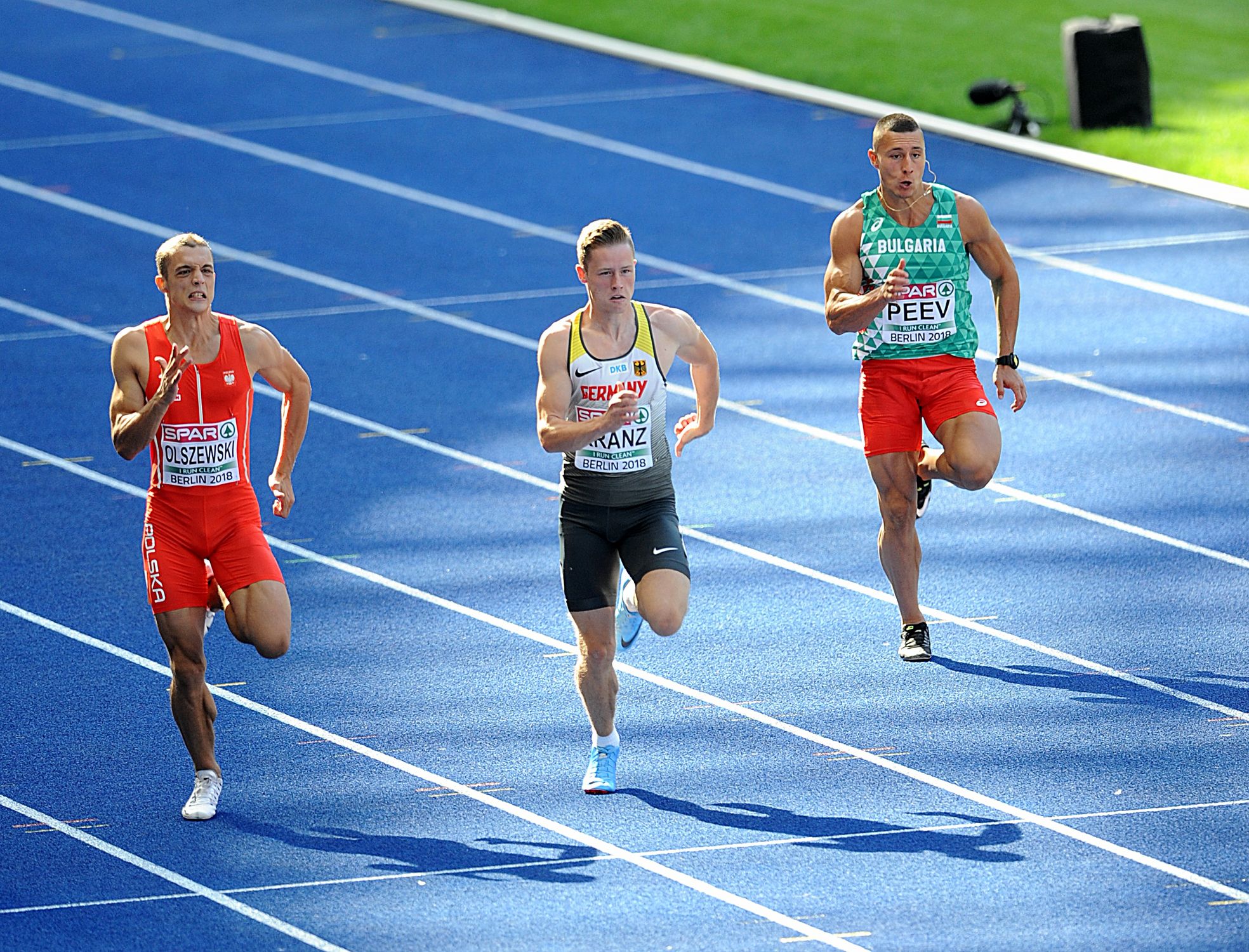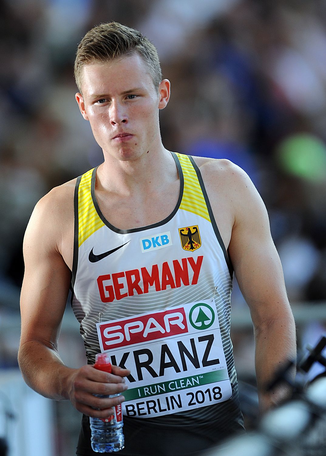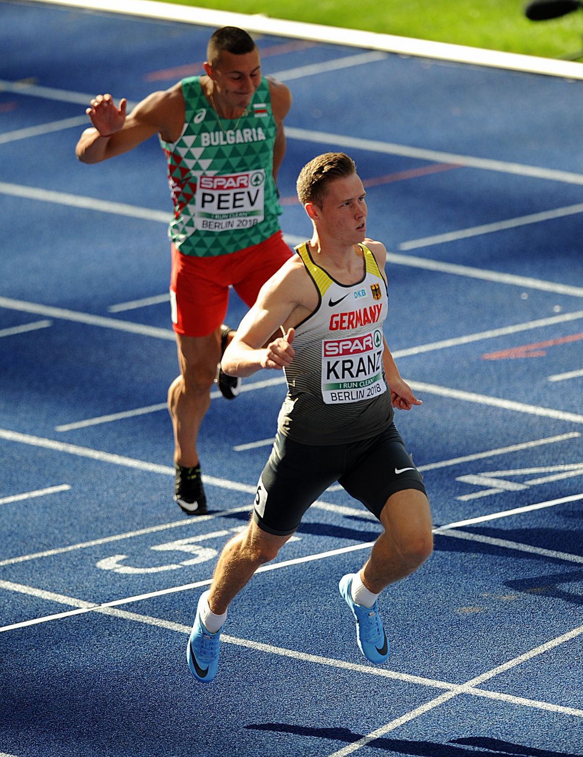 Ein paar Minuten, konkret waren es zwölf, gab es Hoffnung für Kevin Kranz. Hoffnung, noch ins 100-Meter-Halbfinale einzuziehen. Obwohl der 20-jährige deutsche Meister vom Sprintteam Wetzlar in seinem Vorlauf lediglich Fünfter geworden war - in 10,41 Sekunden. Fünf Rennen der ersten Runde gab es am Montagnachmittag bei der Leichtathletik-EM im Berliner Olympiastadion, jeweils die beiden Besten und fünf weitere Zeitschnellste qualifizierten sich für das Halbfinale. Für Kranz als bislang Viertzeitschnellsten gab es vor dem abschließenden fünften Rennen durchaus eine Chance, noch eine Runde weiter zu kommen. Herausgekickt aus seiner ersten EM, dem ersten Wettkampf im Nationaltrikot, wurde der Polizeikommissar-Anwärter dann vom Niederländer Hensley Paulina (10,34) sowie vom Italiener Federico Cattaneo (10,39). Kranz, um es faktisch auf den Punkt zu bringen, war zwei Hundertstel zu langsam.