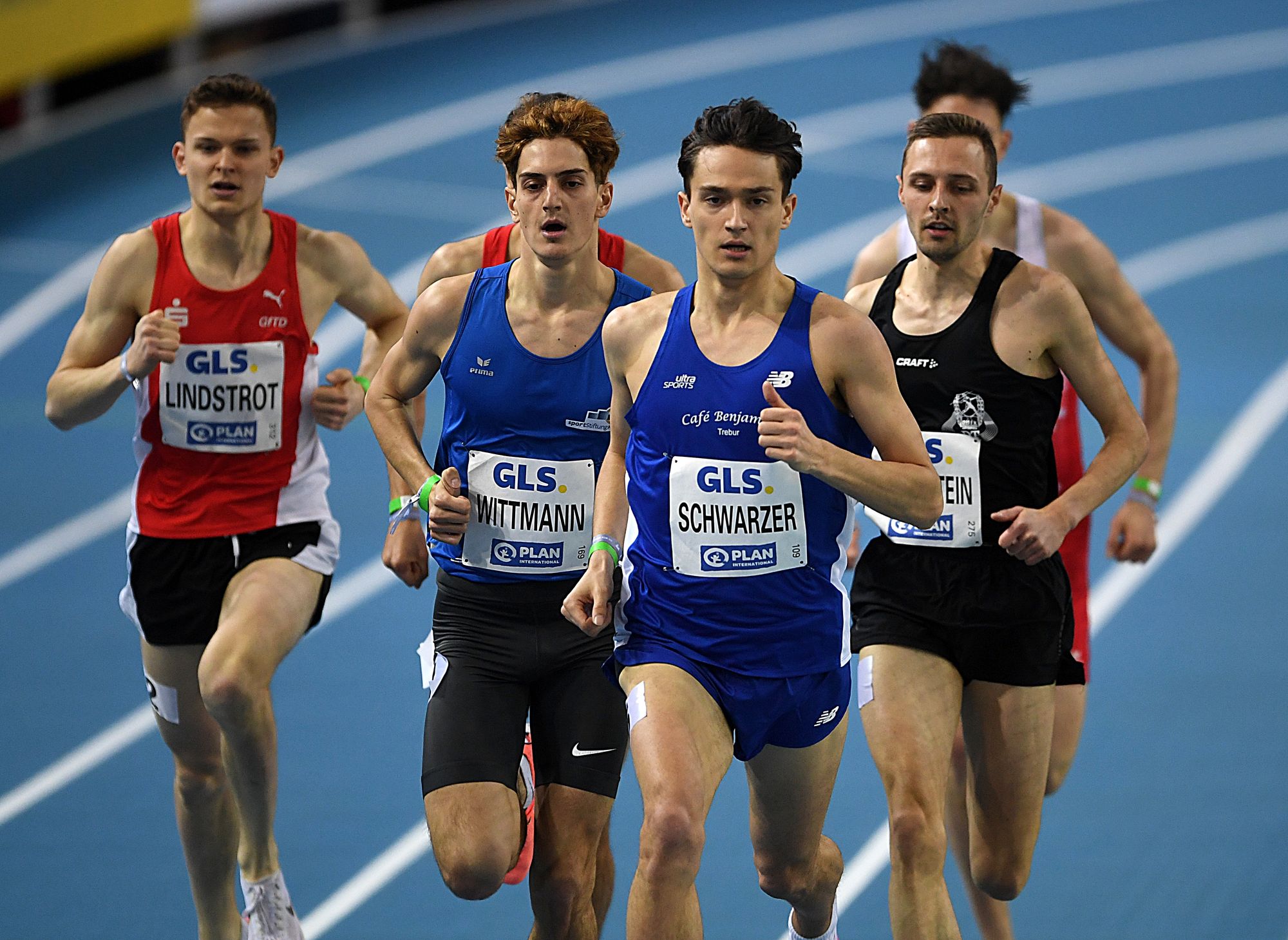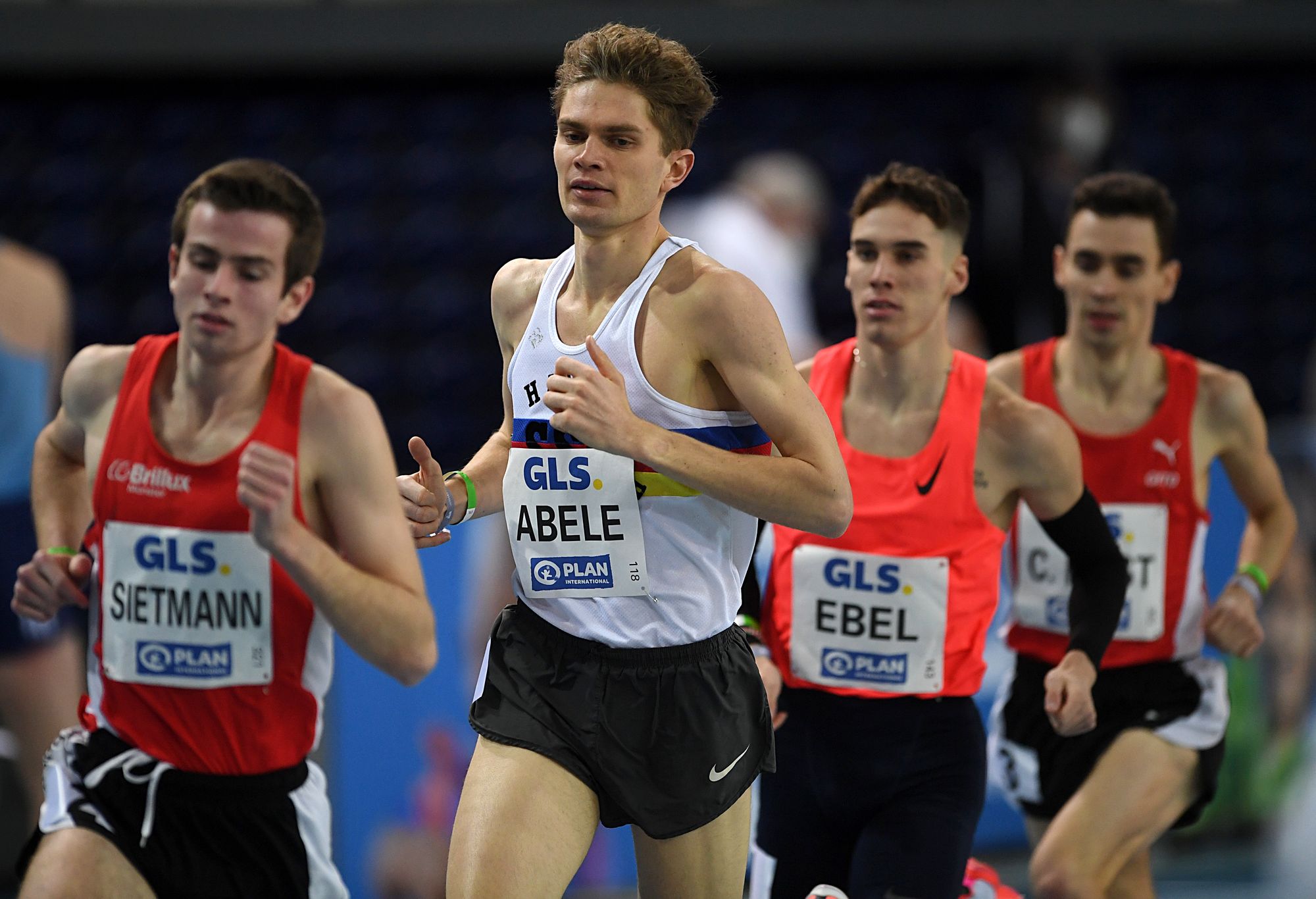 Eher ein lockeres „warm up“ waren die 1500 Meter der Männer. Bei dreizehn Teilnehmern musste nur ein Teilnehmer ausscheiden. Nachdem im zweiten Lauf Marc Carin Steinsberger (LG Farbtex Nordschwarzwald) vorzeitig aufgegeben hatte, war klar, dass alle übrigen Starter das Ticket fürs Finale sicher hatten. Lukas Abele (SSC Hanau Rodenbach) tat nicht mehr als nötig und markierte als Dritter (2. VL) 3:55,11 Minuten.