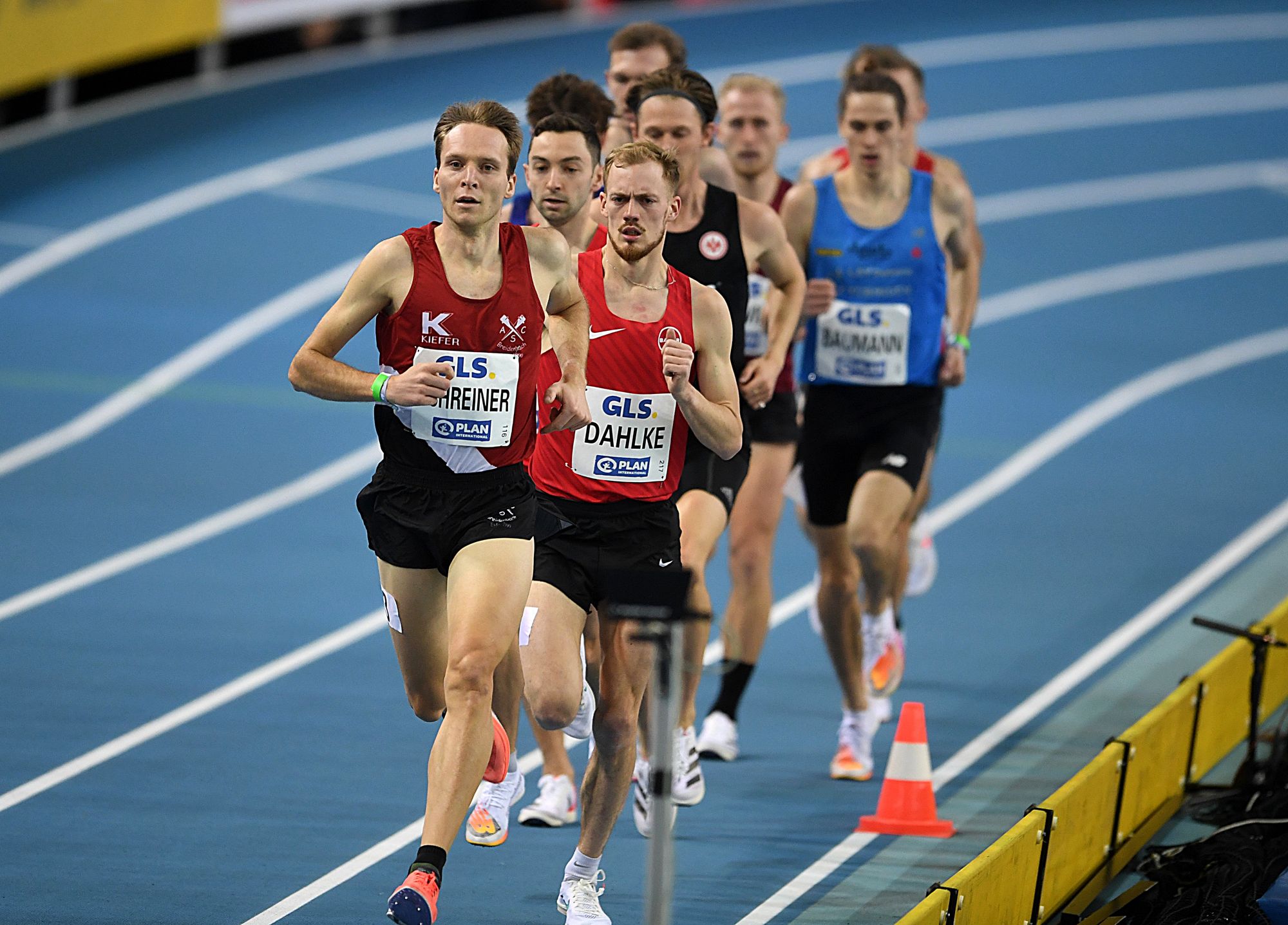 Die ganz schnellen Zeiten über 3000 Meter sind bei einer DM eigentlich nicht zu erwarten. So kam es dann auch. Kilian Schreiner (ASC 1990 Breidenbach) lag vorne, als das Feld bei knapp 2:47 Minuten die 1000 Meter passierte. Schreiner rutschte dann zwar etwas weiter nach hinten, kämpfte jedoch wacker und wurde am Ende als Sechster (8:11,41 min.) mit einer neuen Bestzeit belohnt. Bei der 2000er Marke war das Tempo mit 5:31 Minuten nicht sonderlich flotter geworden. Es war Favorit Maximilian Thorwirth (SFD 75 Düsseldorf Süd), der kurz zuvor die Führungsarbeit übernommen hatte. Runde um Runde spulte der Düsseldorfer an der Spitze ab. In seinem Schlepptau Sam Parsons, der keine Anstalten machte, auch einmal etwas fürs Tempo zu tun. Als der Eintrachtler dann attackierte, hielt Thorwirth dagegen und wurde seine rundenlange Führungsarbeit nach 8:01,43 Minuten verdient mit dem DM-Titel belohnt. Parsons, 2019 deutscher Meister über 3000 Meter, wurde mit 8:02,13 Minuten Zweiter.