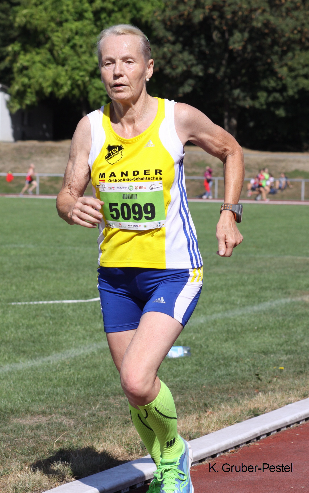Als einzige Frau des Schwalm-Eder-Kreises traute sich Karin Gruber-Pestel (OV) den Anstieg zum Kasseler Wahrzeichen zu und war in 46:11 Minuten als Erste der W 60 die älteste Klassen-Siegerin des Tages. Dabei hängte die mehrfache Nordhessencup-Siegerin 26 stellenweise weitaus jüngere Athletinnen ab.