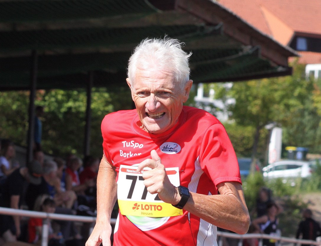 Um mehr als eine Minute auf 36:27,88 gegenüber Mengerskirchen 2023 verbesserte sich Timo Bach (SC Steinatal) über 10 000 Meter der M 45 und kam als Zweiter dennoch nicht an seinen hessischen Rivalen Silvio Welkner (LG Wettenberg) vorbei. Bereits seinen achten hessischen Meisterwimpel erkämpfte M 65-Senior Helmut Kleinmann (TuSpo Borken). Der vormalige VW-Angestellte bewältigte die 25-Runden-Distanz in 47:14,45 Minuten und war der älteste Starter in der Rhönkampfbahn. Ihren Schützlingen ein Beispiel gab Kader-Trainerin Doris Frölich (Ermetheis/KSV Baunatal) als Dritte der W 55 in 55:51,78 Minuten.