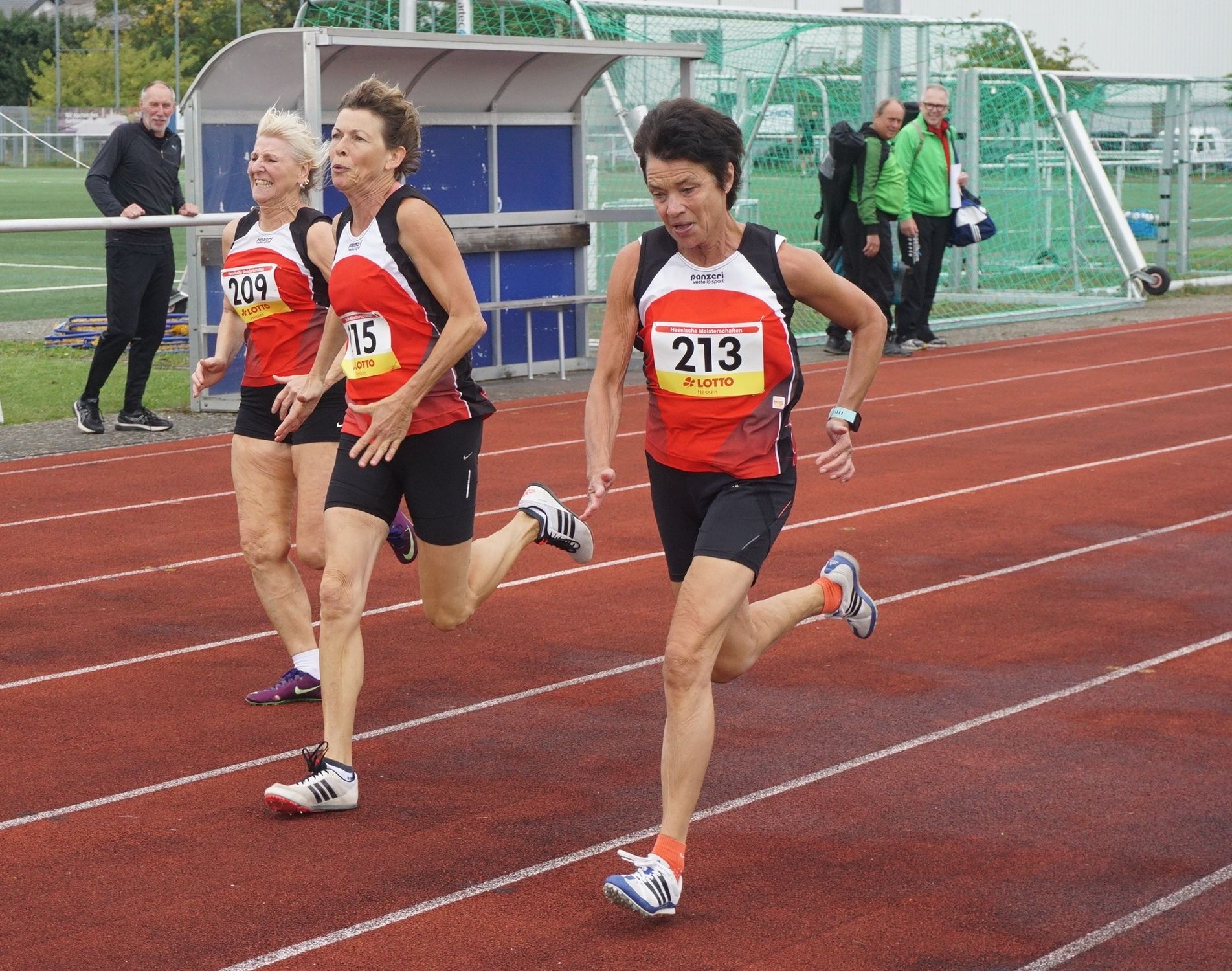 Einen hessischen Rekord gab es in der W55 durch Kornelia Wrzesniok ebenfalls im Dreisprung zu bejubeln. Mit 8,85 Metern verbesserte die Athletin des ASC Neu-Isenburg die alte Bestmarke von Maria Zahn aus dem Jahr 1993 (8,77m).
