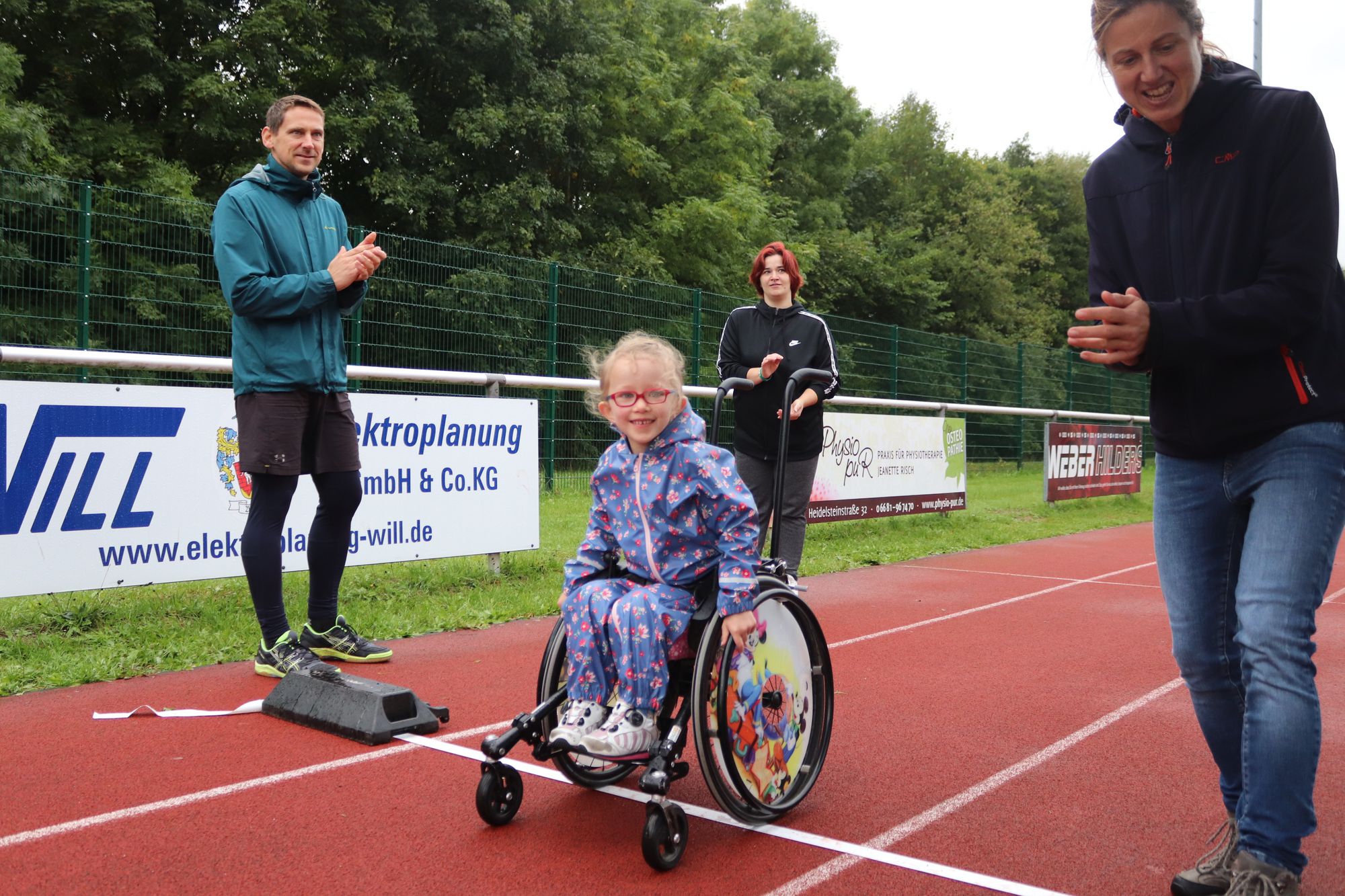Die ersten Meter versuchte Joanna ängstlich, ihren Rollstuhl abzubremsen. Doch dann hatte sie sich an das schnelle Tempo gewöhnt, mit dem ihre Mutter Christina Honikel sie während des Biathlons von Wurfstation zu Wurfstation schob. Zum ersten Mal nahm die Fünfjährige trotz ihrer Behinderung aktiv und nicht wie sonst als Zuschauerin an einem Leichtathletik-Wettkampf teil.