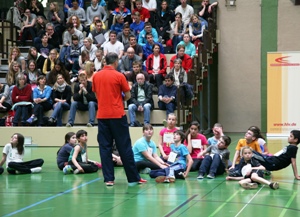 Der zweite Teil begann mit einem Vortrag von Michael Hocke (HLV/LAV Kassel) und Helmut Simshäuser (Landesservicestelle für den Schulsport) zur Talenterkennung und -förderung in der Schule und im Sportverein. Anschließend konnten die Teilnehmer zwischen zwei Praxis-Workshops zu den jeweiligen Schwerpunkten "Kinderleichtathletik" und "Talentförderung im Block Sprint/Sprung" wählen. Nicht nur in der abschließenden Diskussion, auch in den Gesprächen am Rande der Veranstaltung diskutierten die Teilnehmer neue Entwicklungen in der Leichtathletik im Unterricht und im Training.