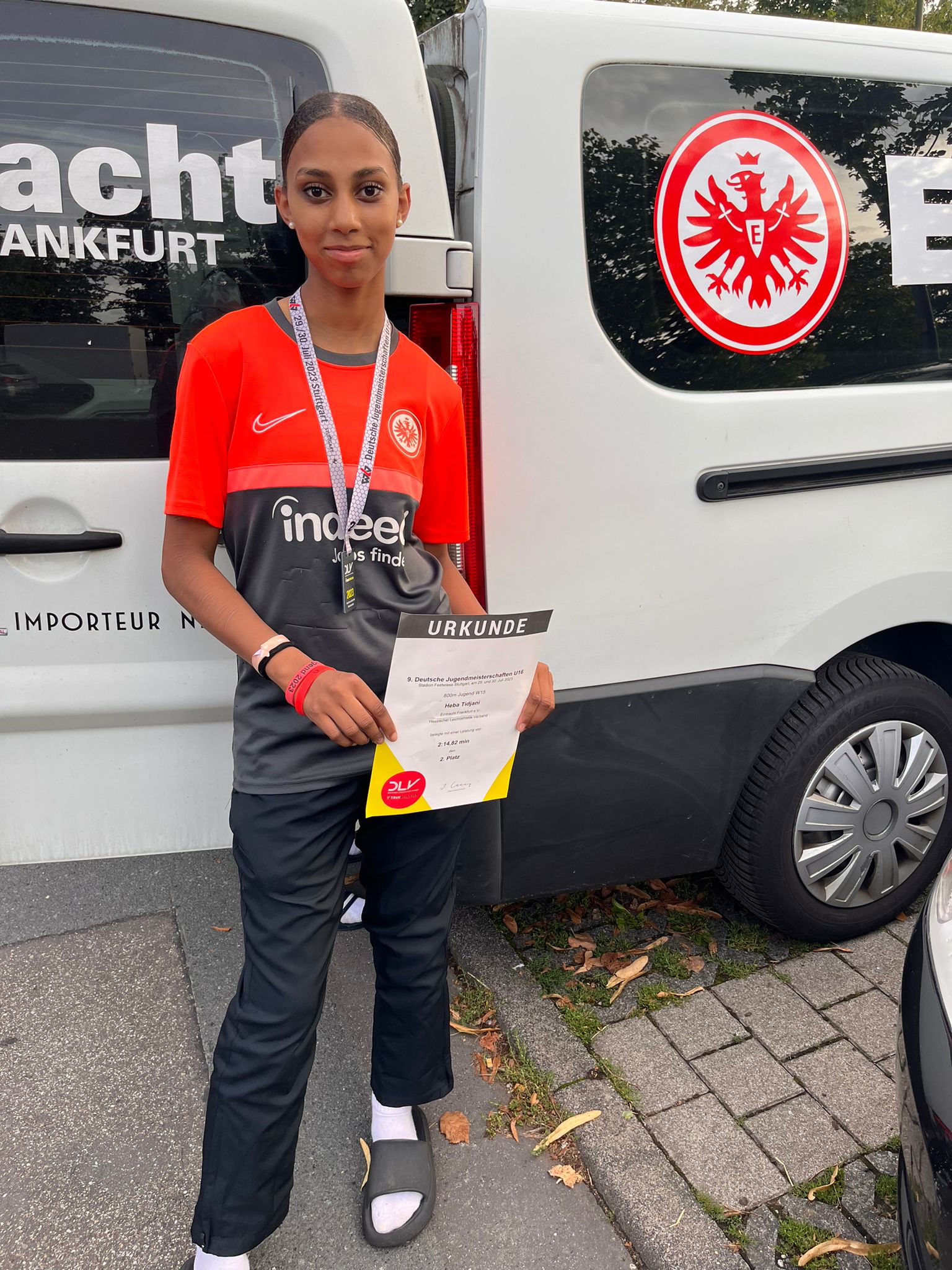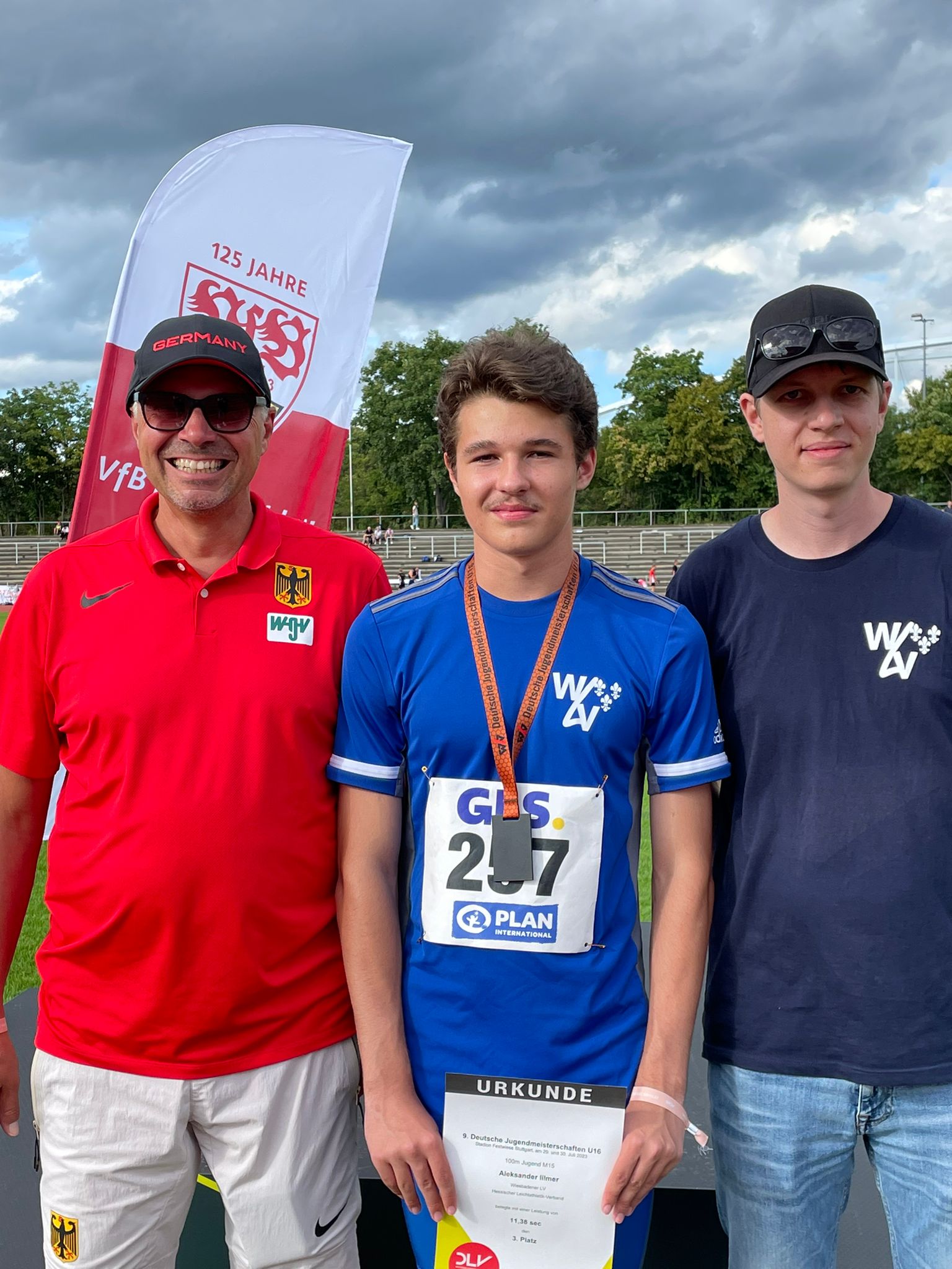 Neben einer Goldmedaille gingen auch zweimal Silber und einmal Bronze nach Hessen. An Tag 1 gelang es Aleksander Illmer vom Wiesbadener LV aufs Treppchen. Im 100m Finale rannte er mit 11,38 sek. eine persönliche Bestleistung und schaffte es bei starker Konkurrenz auf den Bronzerang. An Tag 2 schnappten sich Heba Tidjami (Eintracht Frankfurt) mit PB von 2:14,82 min. in einem klasse 800m Rennen und Lennard Hasche (noch DHfK Leipzig, trainiert am BSP FFM) mit PB von 6,54m im Weitsprung die Silbermedaille.
