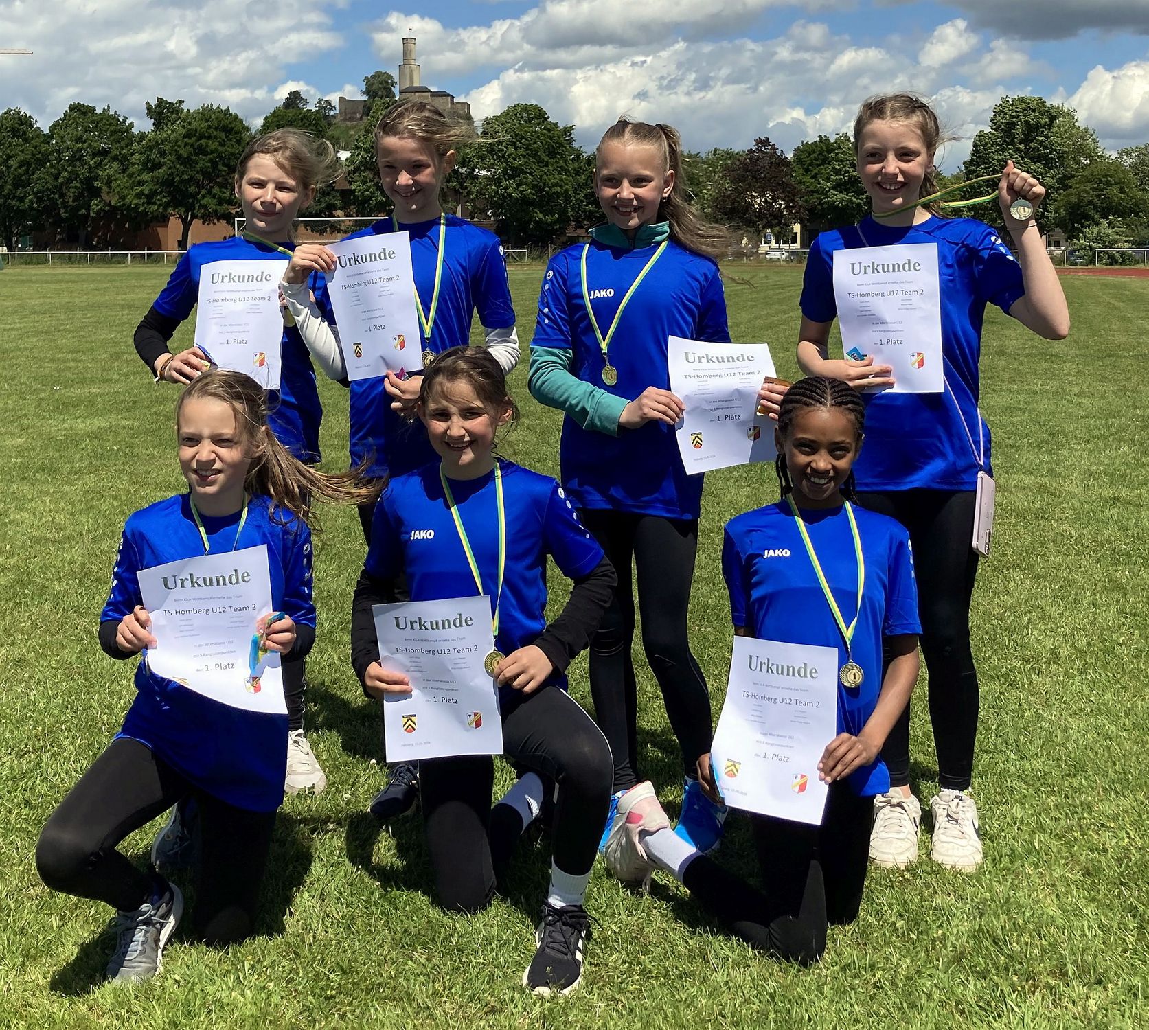 Unser Bild die siegreichen Mädchen der Homberger Turnerschaft mit hinten (von links) Lene-Carlotte Stuhlmann, Laura Skirde, Alisa Sileikaite und Lilli Meichsner sowie vorn (von links) Malene Vogel, Lina Wagner und Efrata Tesfay Genene. (zct)