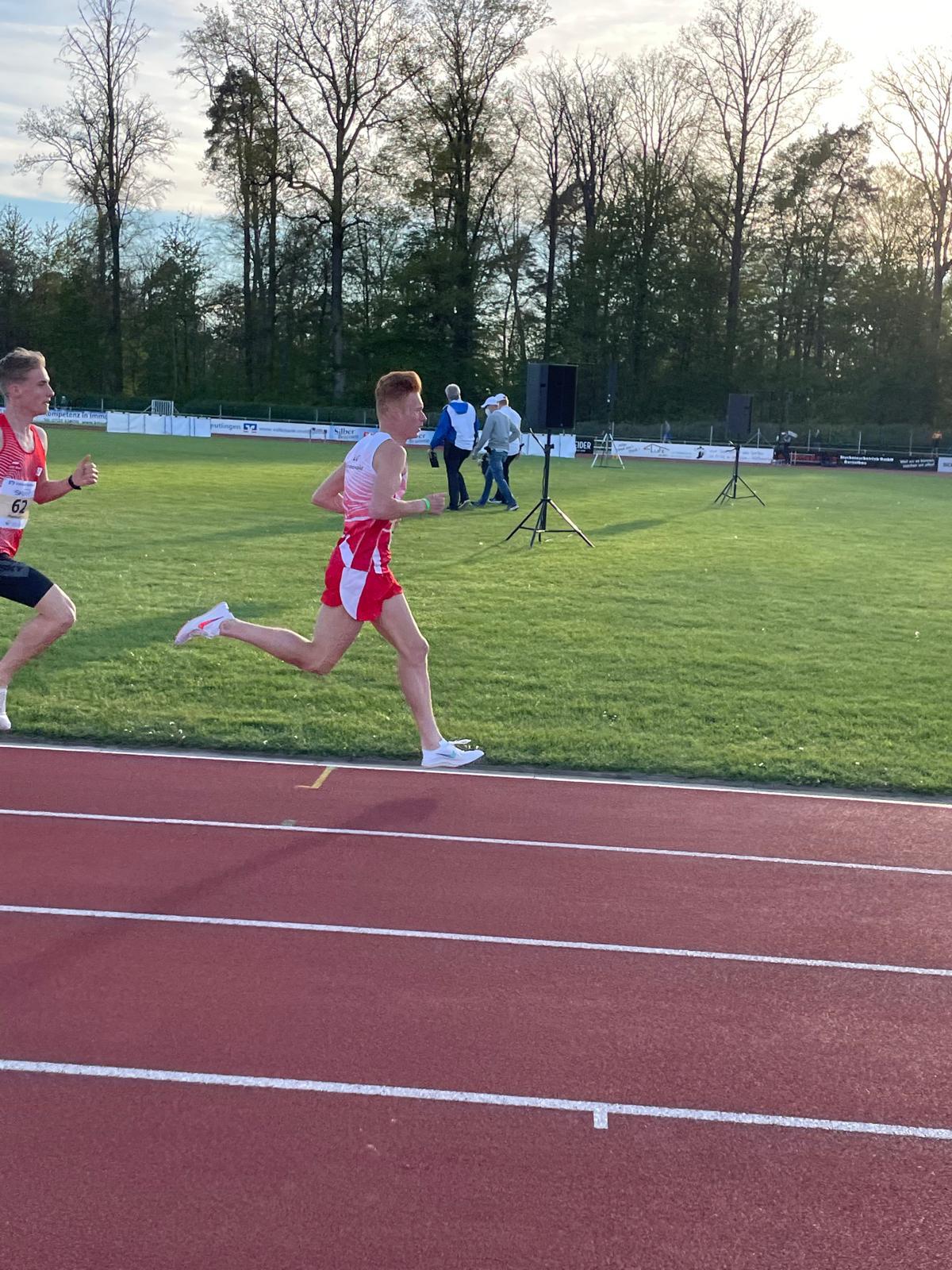 Auch die Konkurrenz hatte wenig Lust auf Tempoarbeit und so wurden die ersten beiden Runden in gemächlichen 66 bis 67 Sekunden gelaufen. Mrochen hielt sich an der vierten Position. „Sonst ziehe ich ja immer einen längeren Endspurt, aber heute war die Vorgabe, gezielt die letzten 300 Meter schnell zu machen“. Während die Topfavoriten Max Dieterich und Kilian Grünhagen, die beide schon unter 3:50 gelaufen sind, vorne wegzogen, wartete Mrochen bis zur 1200-Meter-Marke, um richtig Gas zu geben. „Ab da bin ich dann jeden 100-Meter-Abschnitt schneller als den vorhergehenden gelaufen.“ Fast hätte er auch die Lücke zu Grünhagen noch geschlossen, doch am Ende fehlten zwei Sekunden. „Mit Blick auf die Deutschen U23-Meisterschaften am kommenden Wochenende war das auf jeden Fall ein guter Trainingsreiz und zeigt mir, dass ich gegebenenfalls auch in einem Bummelrennen mithalten kann, wenn es am Ende richtig schnell wird.“.
