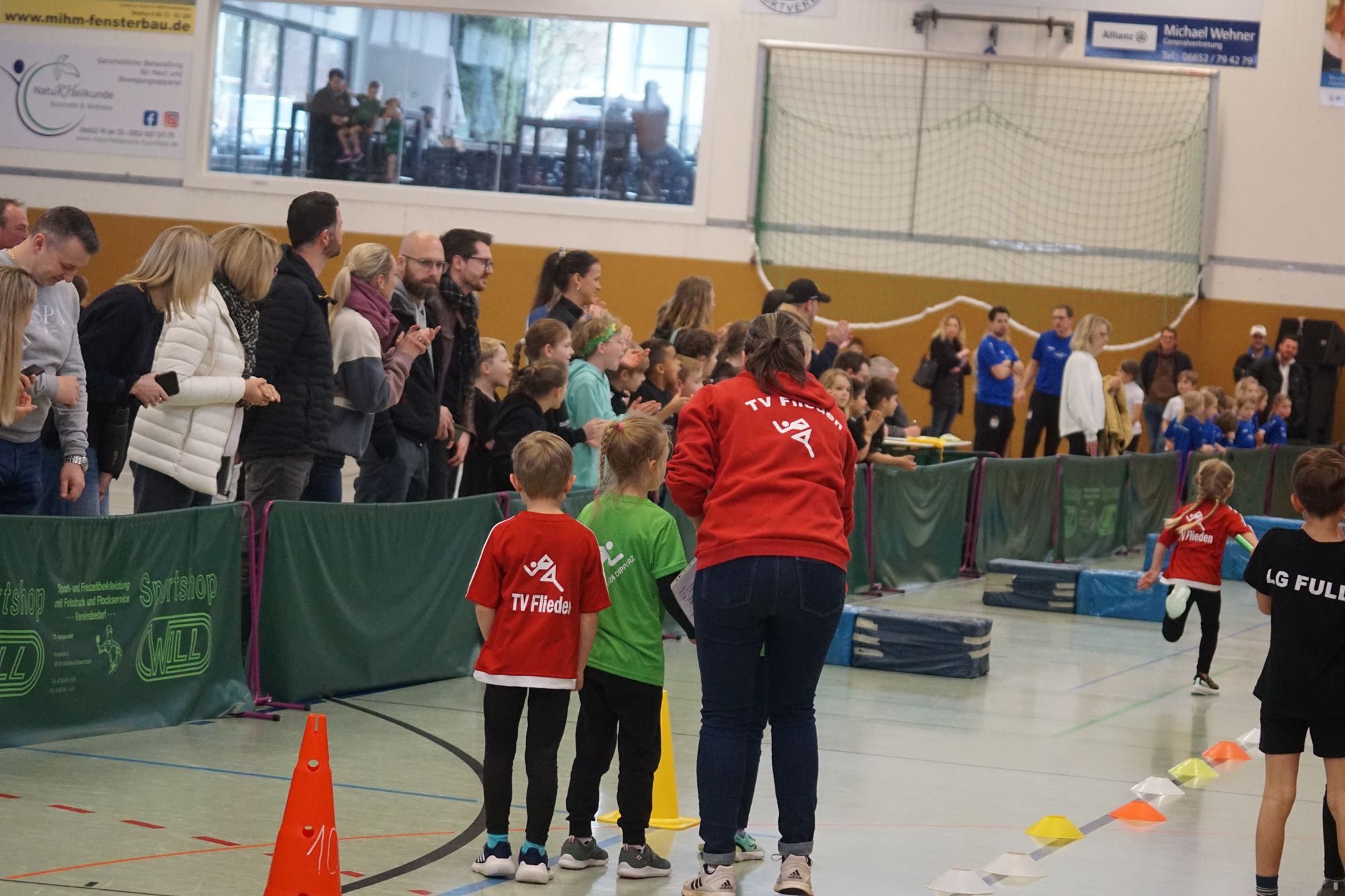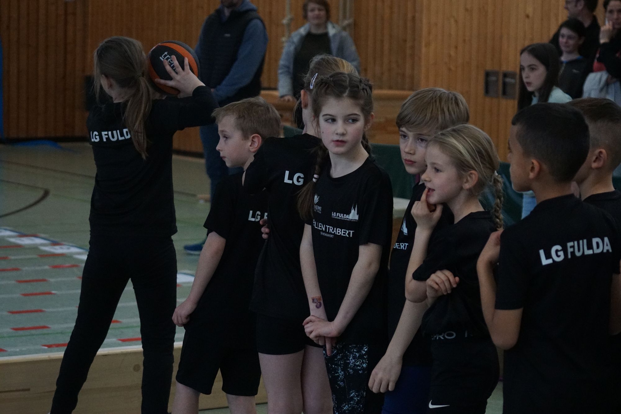 Von den gemeldeten 250 Athleten im Alter von 5 bis 11 Jahren waren dann krankheitsbedingt „nur“ 240 aus 7 Vereinen am Start, eine Beteiligung auf Rekordniveau. Der Hünfelder SV stellte mit 53 Athleten erneut das größte Kontingent, gefolgt von der LG Fulda mit 45 und dem TV Petersberg mit 39 Athleten. Am Start waren insgesamt 28 Mannschaften, vom Hünfelder SV und der LG Fulda waren es jeweils 6 Mannschaften, je 2 in jeder Altersklasse.