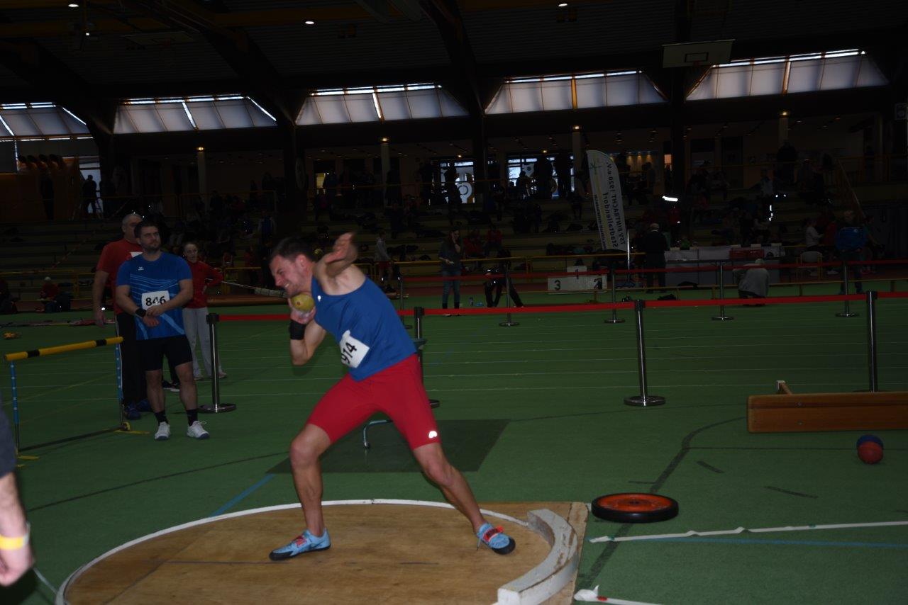 Männer: Die schnellsten Beine im 60-Meter und 200-Meter-Sprint hatte schon im Vorlauf Leonard Figge (ESV Jahn Teysa) in 7,50 Sekunden und 24,53 Sekunden. Dazu überfloppte er im Hochsprung die Siegeshöhe von 1,77 Metern. Überlegener 3000-Meter-Sieger über 16 Hallenrunden wurde der 47-jährige Goßfeldener Polizist Lars Siegmund (LC Diabü Eschenburg) in 9:42,68 Minuten. In seiner Trainingshalle überquerte Lukas Göttig (TSV Kirchhain) mit dem Stab 3,70 Meter. Immer wieder gerne springt Lennart Genz (TSV Eintracht Stadtallendorf) in seinem „Wohnzimmer“. Hier konnte er in den letzten Jahren schon deutlich mehrmals über 7-Meter-Marke springen. Nach dem Abschluss seines Ingenieurstudiums hat er seinen Wohnsitz nach Sindelfingen verlegt hat und muss dementsprechend auch im Training kürzer treten. Dass er immer noch weit springen kann, zeigte er, als er gleich dreimal über 6,30 Meter sprang. Sein weitester Sprung wurde mit 6,37 Metern gemessen. Knapp an der 6-Meter-Marke scheiterte Lars Reuter TSV Kirchhain) als Zweiter mit 5,95 Metern.