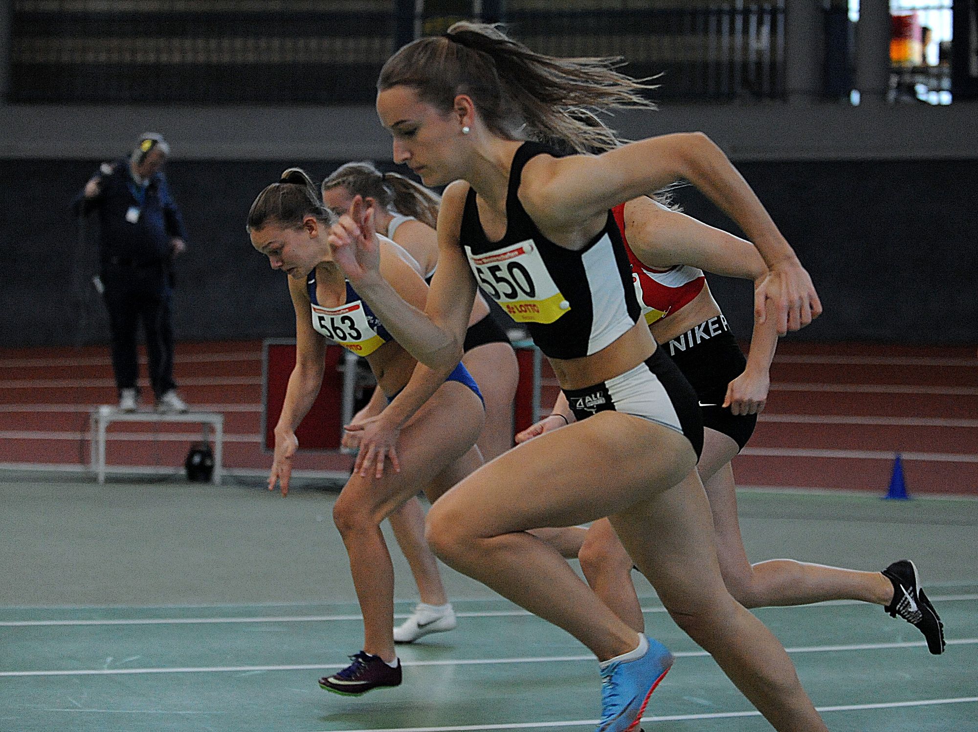 Im 60-Meter-Sprint hängte eine Jugendliche die Frauen-Konkurrenz ab. Antonia Dellert (Sprintteam Wetzlar/1. Jahr U20) zeigte im Vorlauf ihr großes Talent und flog in der neuen Bestzeit von 7,40 Sekunden ins Finale. Dort bestätigte sie dann wenig später als Siegerin (7,43 sec.) ihre tolle Form und hängte damit die 25-jährige Amelie Sophie Lederer (LG Teils Finanz Regensburg/7,49 sec.) ab. Lara Tornow (ebenfalls Sprintteam) beendete das Finale in 7,55 sec. als Sechste, war im Vorlauf mit 7,53 Sekunden jedoch ein Tick schneller unterwegs. „Das war eine tolle Vorstellung von Antonia, die gegen die ältere Konkurrenz richtig gut unterwegs war“, freute sich auch HLV-Sprintcoach David Correll. Kein Wunder, wird sein Schützling mit der Zeit von Erfurt in der Europa-Statistik der Altersklasse U20 auf Platz acht geführt und ist momentan die schnellste deutsche Sprinterin ihrer Klasse.