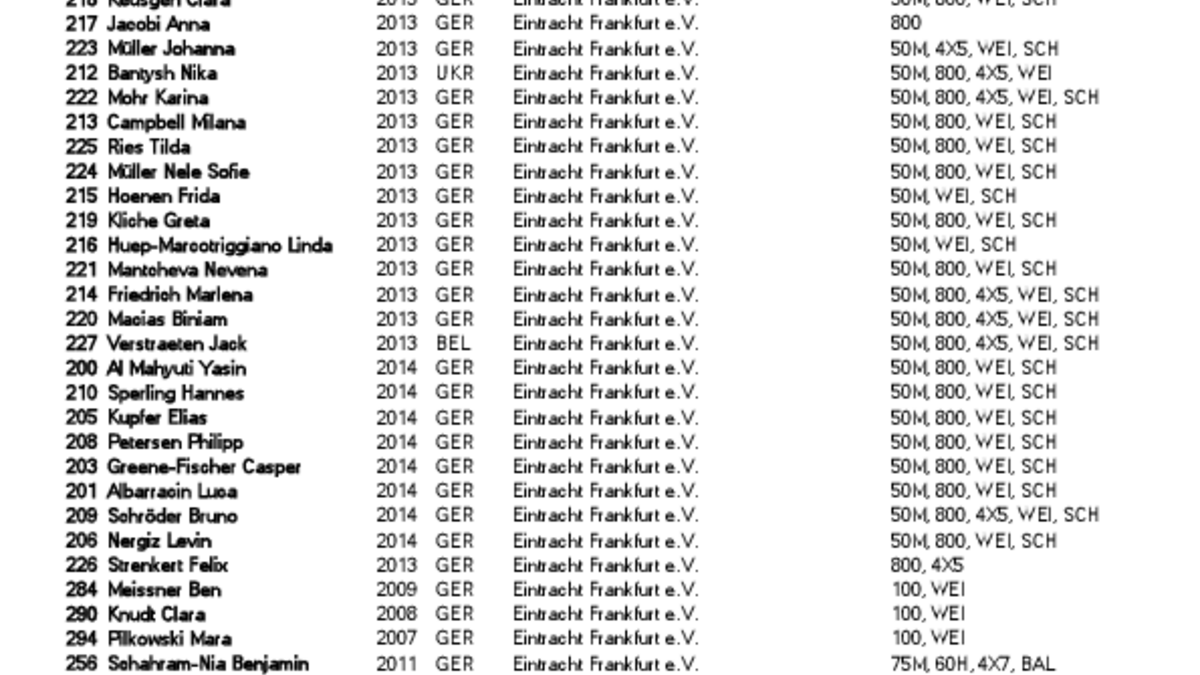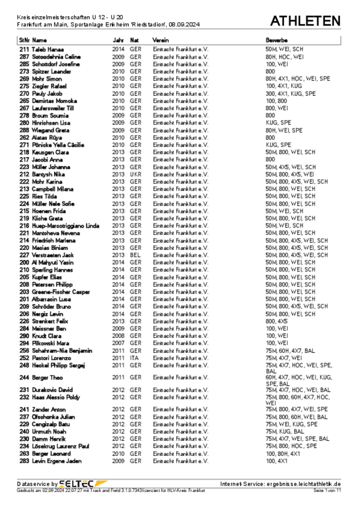 Meldungen Kreiseinzelmeisterschaften U 12 - U 20 2024