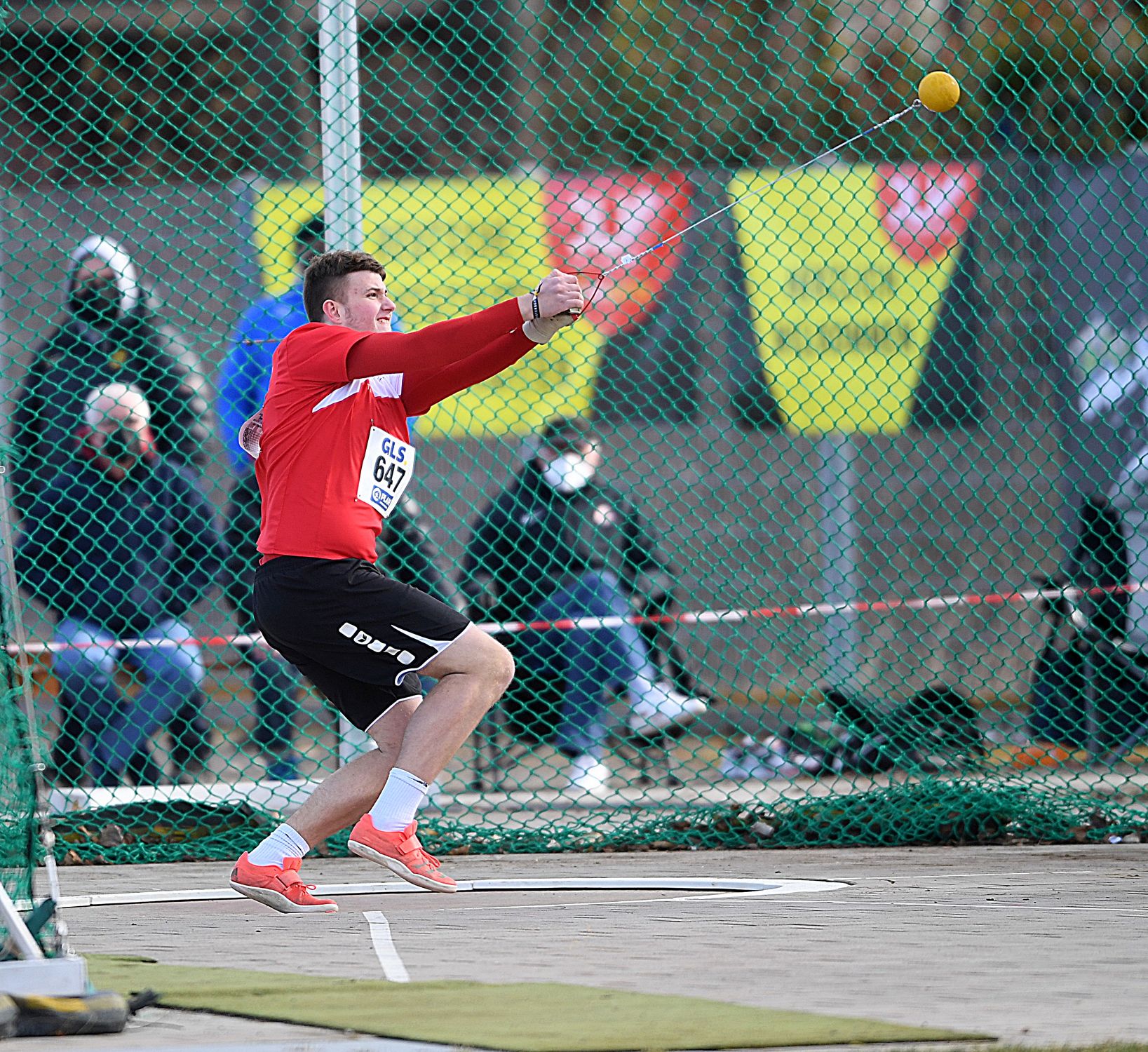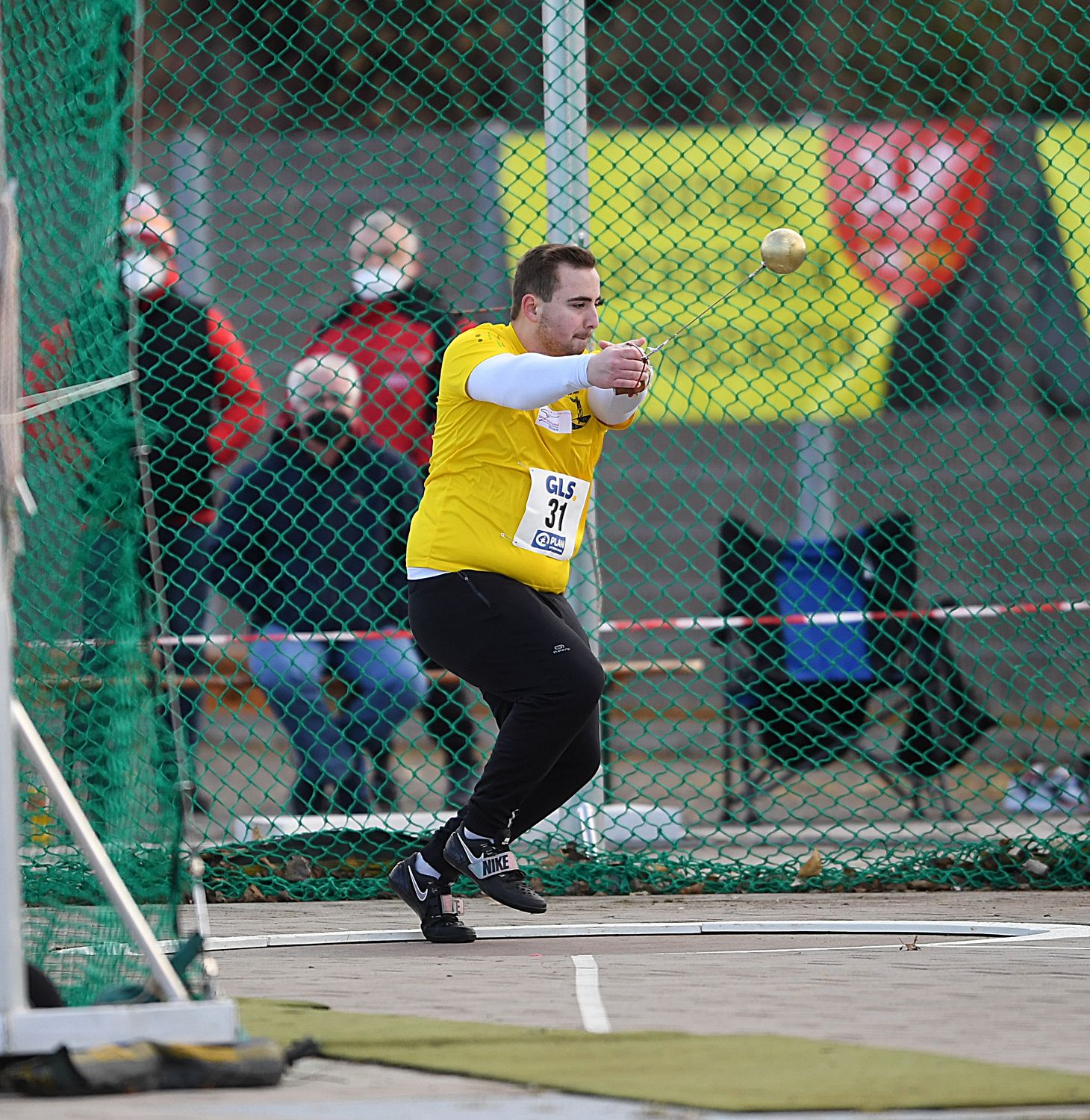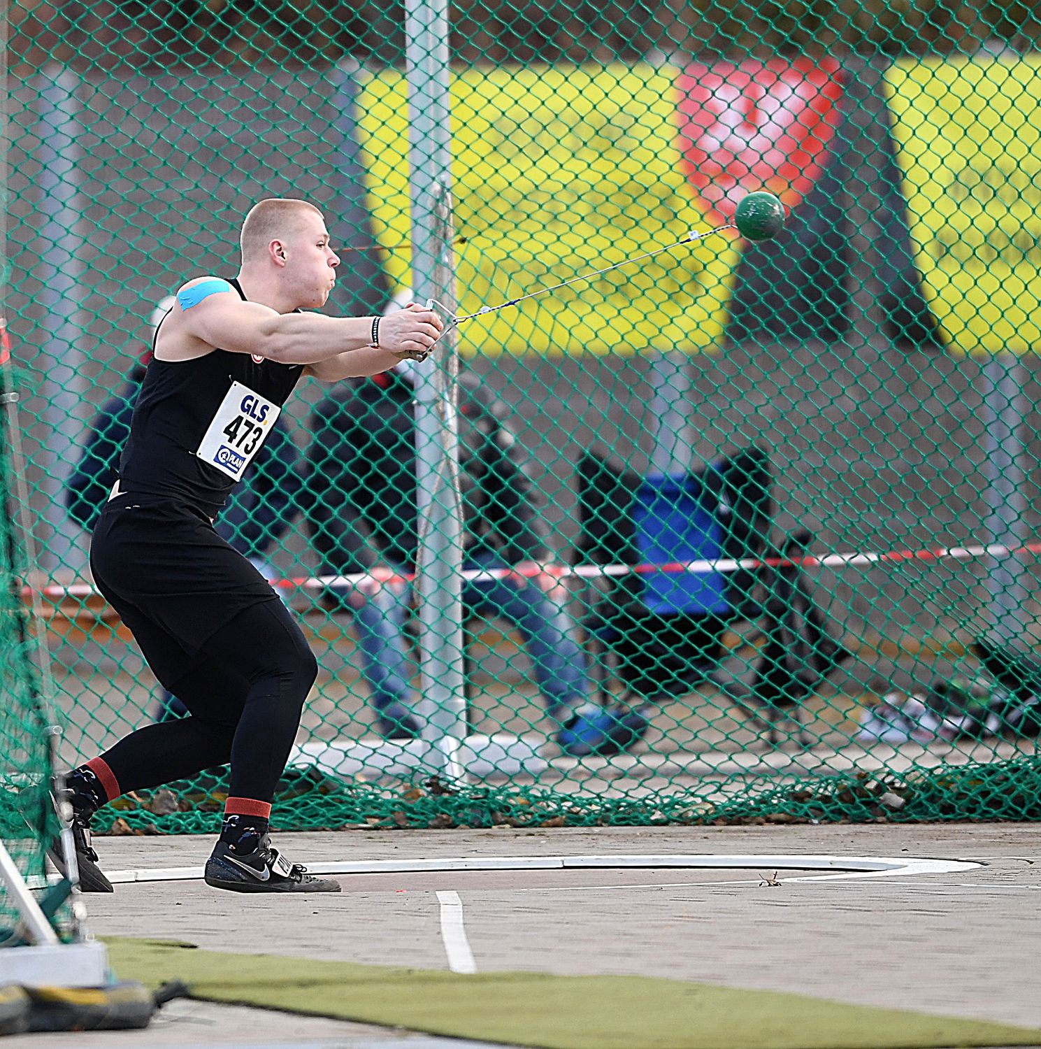Beim Hammerwerfen reichten Kai Hurych (KSV Fürth) 66,40 Meter, um Dawid Morgalla (TSV Bayer 04 Leverkusen/59,18 Meter) auf Distanz zu halten und den Winterwurf-Titel zu holen. Kai zeigte wieder eine konstant solide Serie mit sechs gültigen Versuchen, die alle weiter als 63 Meter flogen. Tim Steinfurth (LG Eppstein-Kelkheim) markierte mit seinem letzten Versuch 58,34 Meter und verdrängte damit Leon Bierende (SV Teutschenthal/58,27 m) ein paar Zentimetern Vorsprung aus den Medaillenrängen. Marvin Baumann (TV Fränkisch-Crumbach) musste mit 56,75 Metern (5.) zufrieden sein. Michael Neuenroth (Eintracht Frankfurt/9.) musste mit nur 52,50 Metern bereits nach dem Vorkampf sein Wurfgerät wieder einpacken.