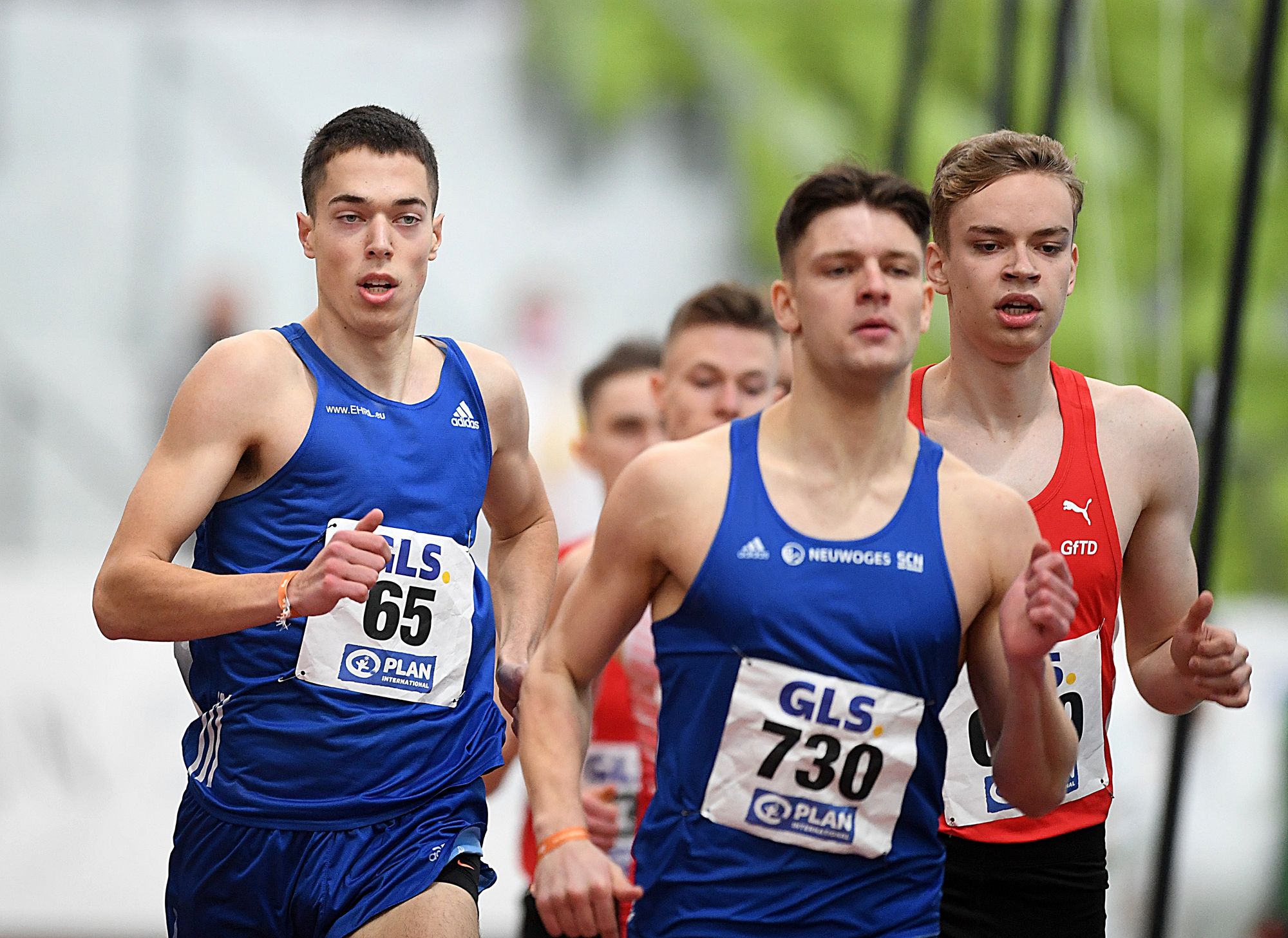 Zwei Hessen liefen sich über die 1500 Meter ins Finale. Bei Medaillenanwärter Jan Dillemuth (TV Assenheim) waren es 4:04,71 Minuten, Nick Fröhlich KSV Baunatal) zeigte 4:07,55 Minuten. Im Finale war denn schnell klar, das eher taktisch gelaufen wird. Zwischenzeiten von knapp 69 Sekunden bei 400 Metern sowie 2:16 Minuten bei 800 Metern sind nicht übermäßig flott. Als zur Sache ging hatte sich Jan Dillemuth, mit 3:50,46 Minuten der Hallenbeste der Saison, in Position gebracht. Am Ende reichte es für den Läufer aus der Wetterau nicht ganz - 4:00,76 Minuten bedeuteten den Bronzerang hinter Tim Kalies (Braunschweiger LC/3:58,98 min.) und Silas Zahlten (LG Brillux Münster/4:00,18 min.). Nick Fröhlich, der sich zwischenzeitlich etwas ums Tempo bemüht hatte, musste in der Endphase abreißen lassen und wurde Zwölfter (4:09,03 min.).