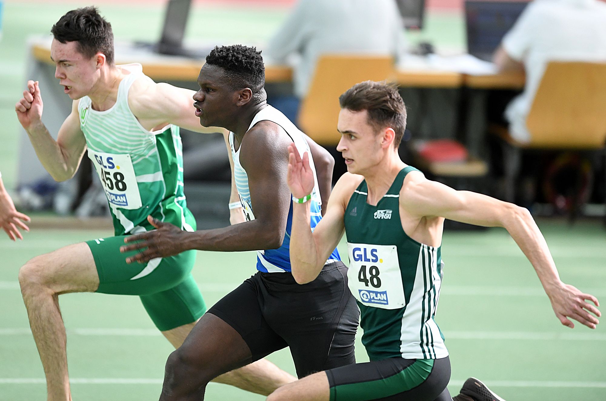 400 Meter: Eigentlich war eine DM-Medaille für Okai Charles über 400 Meter Pflicht. Mit 48,16 Sekunden reiste der KLV-Athlet nämlich mit der schnellsten Hallenzeit der 18 Teilnehmer an. Als sicher Sieger seines Vorlaufes zeigte Okai mit 48,65 Sekunden auch die flotteste Zeit in der ersten Runde. Also alles im grünen Bereich. Im etwas unruhig gelaufenen Finale hatte sich Maximilan Köhler (LG Region Karlsruhe) an die Spitze gesetzt und verteidigte diese Position in der neuen deutschen Jahresbestzeit von 48,03 Sekunden bis ins Ziel. Favorit Okai Charles wollte am Anfang der zweiten Runde in der Kurve außen vorbei, schaffte es aber nicht. Am Ende blieb Charles ganz ohne Medaille, da auf den letzten Metern auch noch Jan Niclas Kaluza (Eintracht Hildesheim/48,48 sec.) vorbeizog.