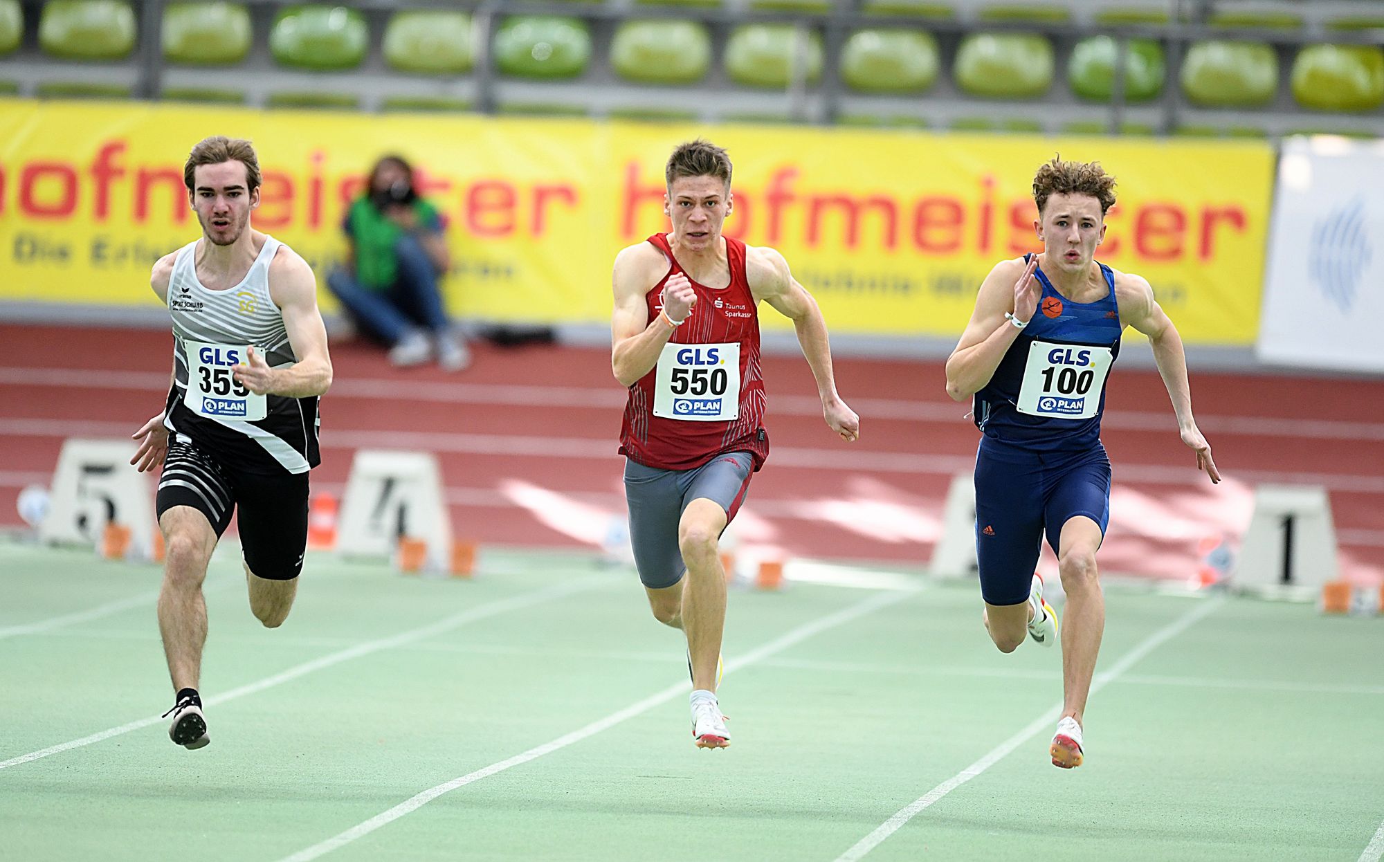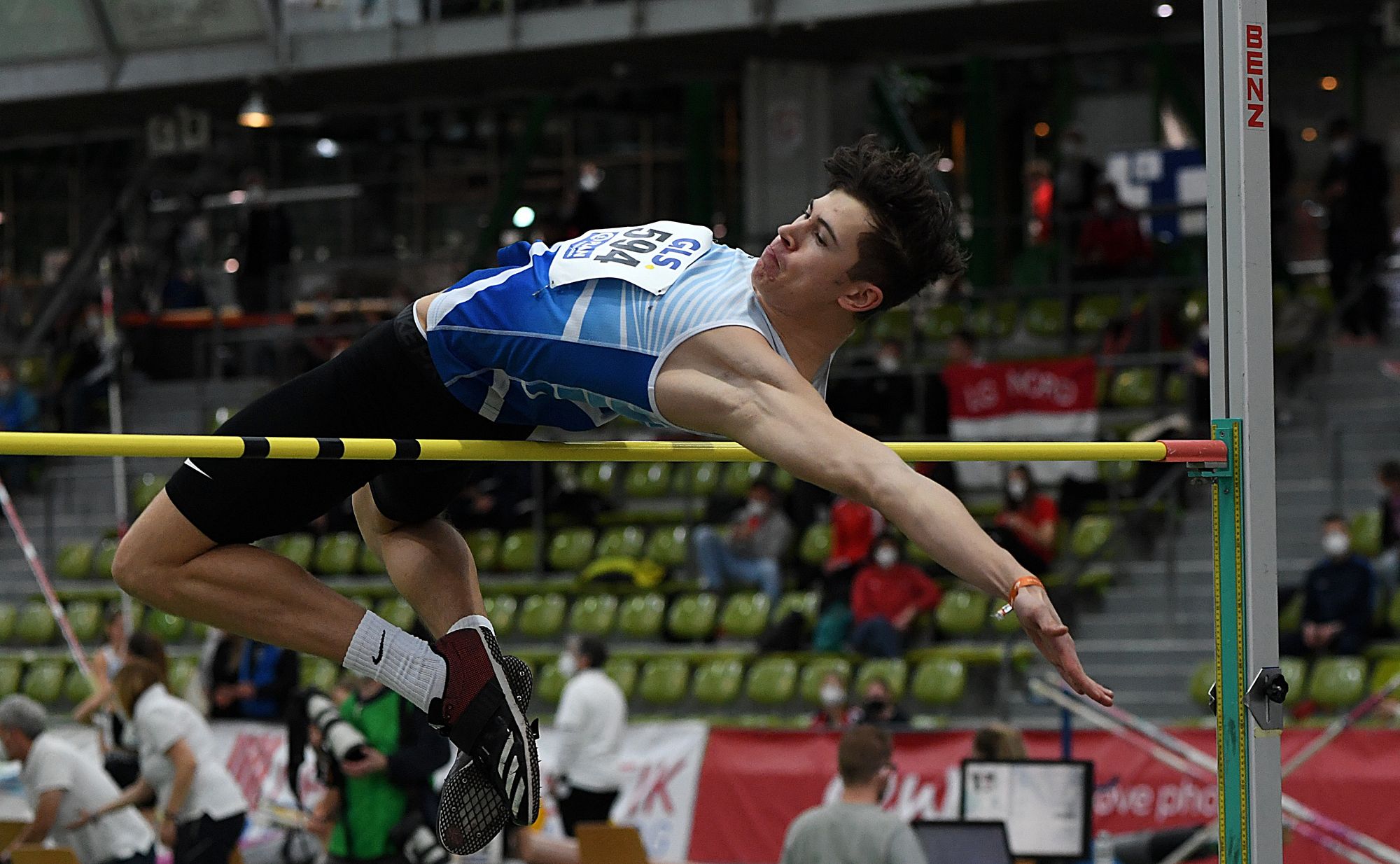 200 Meter: Finn Kohlenbach (Königsteiner LV) gab auf der Hallenrunde von Beginn an richtig Vollgas. Das war auch angesagt, denn aus den fünf Vorläufen ging es nur für die acht Zweitschnellsten weiter ins A- bzw. B-Finale. Der KLVler blieb als Sieger seines Rennens mit starken 21,91 Sekunden erstmals unter der 22-Sekunden-Marke und sicherte sich damit, etwas überraschend, den letzten Platz im A-Finale. Dort musste Finn dann auf der engen Innenbahn starten. Bei seiner Körpergröße und den engen Kurvenradien blieb die Stoppuhr dann bei 22,27 Sekunden (4.) stehen.