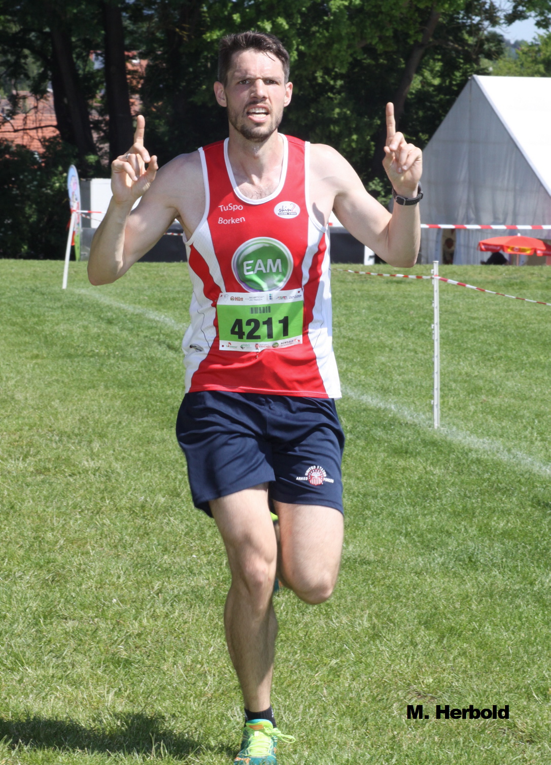 Im Rennen über fünf Kilometer tauchte Martin Herbold (TuSpo Borken) als Erster am Tor zur Stadionrunde auf und lief in 17:26 über die gesamte Distanz mehr als eine halbe Minute Vorsprung vor dem Eisenacher Stefan Zimmermann (SV Einheit/17:57) und Rene Persch (TSV Niederelsungen/18:09) heraus. „So langsam nimmt die erfolgreiche Cup-Verteidigung in der Kombiwertung Konturen an. Zwei Rennen über fünf Kilometer fehlen mir noch“, sagte der Hauptmann der Bundeswehr aus Homberg.