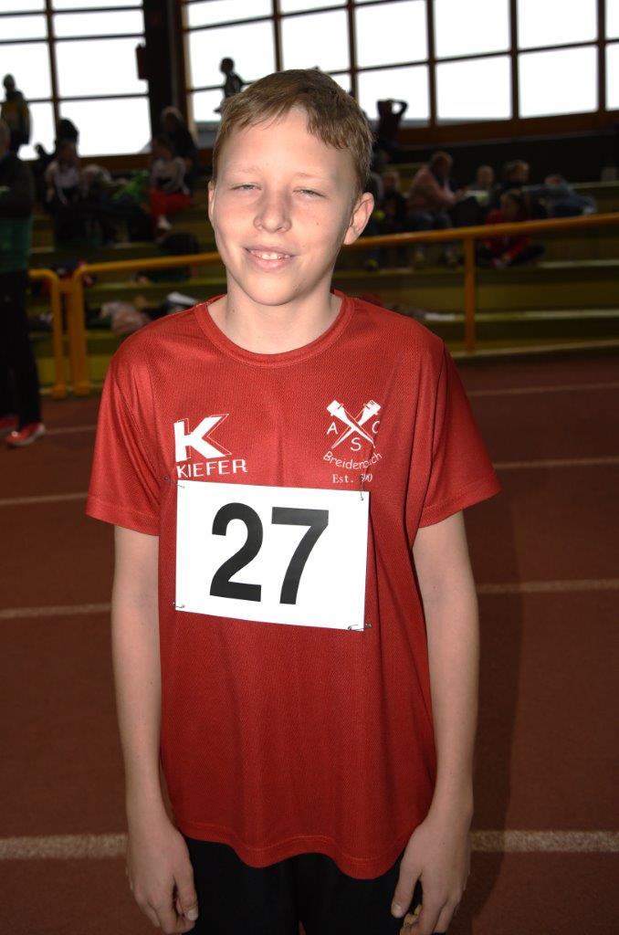 Bei den Schülern M14 trug sich als 800 Meter über 60 Meter-Hürden, Weitsprung sieger und als als zweiter im 60m-Sprint Jakob Leonard Schindler (TSV Kirchain als Kreismeister in die Ergebnisliste ein.