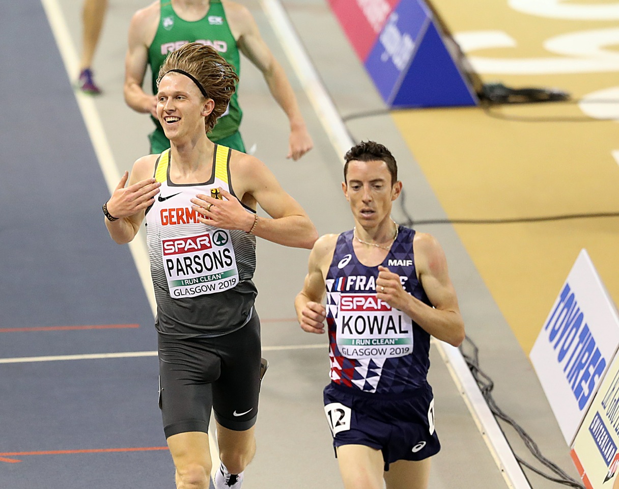 Sam Parsons (LG Eintracht Frankfurt/7:55,60) und sein Teamkollege Amos Bartelsmeyer (7:51,30) belegten in ihren Vorläufen über 3.000 Meter jeweils Platz vier und hatten damit ein großes „Q“ für die direkte Final-Qualifikation hinter ihrem Namen in der Ergebnisliste. Die Endlaufteilnahme war zweifelsfrei erwartet worden, rangieren die Neu-Eintrachtler doch auf Platz sieben (Parsons) bzw. acht der europäischen Hallen-Jahresbestenliste. Dies alleine ist natürlich keine Garantie, gibt es doch gerade bei Vorläufen internationaler Meisterschaften oft taktische Spielereien, denen auch etablierte Athleten zum Opfer fallen können.