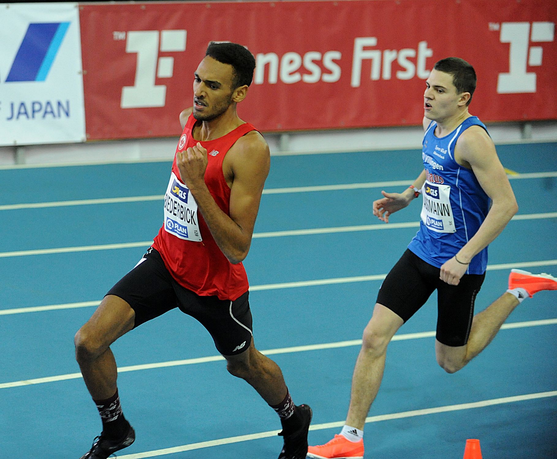 Flott zur Sache ging es auf der 600-Meter-Unterdistanz für die Teilnehmer des HLV Einladungs-Meetings „Mittelstrecke & Hindernis“ auf der Sportanlage in der Hahnstraße. Beindruckend war der Auftritt von Dennis Biederbick (LG Eintracht Frankfurt), der die eineinhalb Stadionrunden in ganz starken 1:16,66 Minuten gewann. In seinem Schlepptau überquerte Team-Kollege Marvin Heinrich mit 1:18,03 Minuten die Ziellinie. Knapp dahinter finishte in 1:18,30 Minuten Oskar Schwarzer (TV Groß-Gerau/noch U23), gefolgt von Maximilian Klink (LG Dornburg/auch U23), der 1:18,88 Minuten benötigte. Jüngster Starter im Feld war Okai Charles vom Königswinter LV. Der U18er wurde mit 1:20,14 Minuten gestoppt.