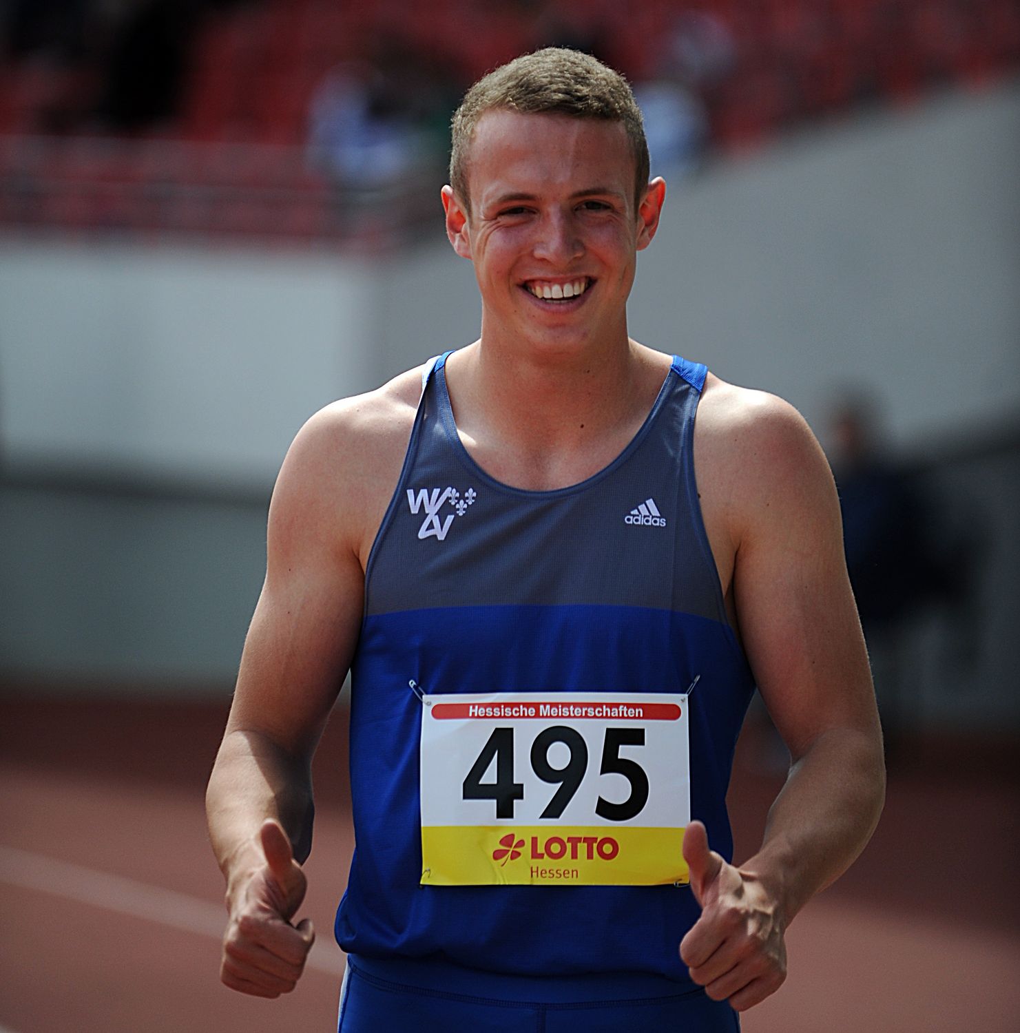 Moritz Mainka ist nicht zu bremsen. Der Kurzhürdenspezialist im Trikot des Wiesbadener LV startete einmal mehr so richtig durch. Beim 18. Stadionfest der LG Mörfelden-Walldorf stürmte der Kaderathlet über 110 Meter Hürden bei Windstille in 13,63 Sekunden als überlegener Sieger der Altersklasse U18 über die Ziellinie. Damit verbesserte der Leichtathlet aus der Landeshauptstadt seinen eigenen Hessenrekord um gleich beachtliche 0,16 Sekunden. Die alte Marke hatte der U18er im Finale der hessischen Meisterschaften Ende Mai in Kassel aufgestellt. Mit dem neuen Rekord baute Mainka seinen Vorsprung in der deutschen Jahresbestenliste auf Till Steinforth (SV Halle/13,86 Sekunden) erheblich aus. Die beiden Führenden im nationalen Ranking treffen an diesem Samstag bei der DLV-Junioren-Gala in Mannheim direkt aufeinander. Zusammen mit Tim Henseler (LAV Bayer Uerdingen/Dormagen) kämpft dieses Trio um das einzige Ticket zum Europäischen Olympia-Jugendfestival“ in Baku (Aserbaidschan 21. bis 27. Juli), das auf den Sieger des Rennens wartet. Beim Blick auf die bisher erzielten Zeiten ist Mainka der klare Favorit.