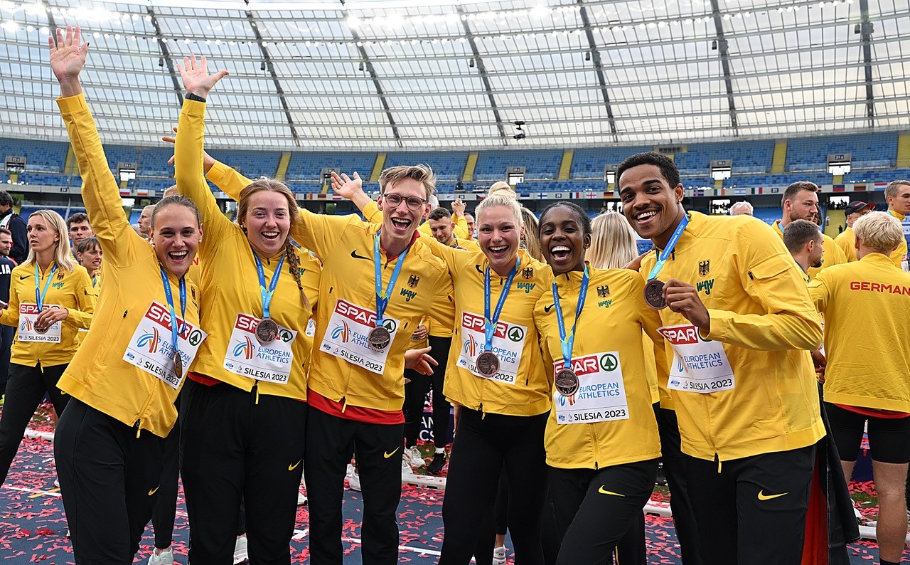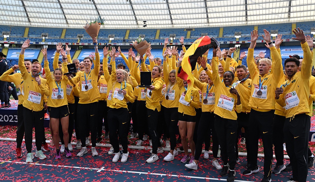 4x100 Meter: Lisa Mayer hatte mit der Staffel ihren zweiten Einsatz in Chorzow und kam auf Position zwei auf der „langen“ Gegengeraden zum Einsatz. Startläuferin war Lisa Nippgen (MTG Mannheim), die zweite Kurve lief Louise Wieland (Hamburger SV), die an Jennifer Montag (TSV Bayer 04 Leverkusen) übergab. Das Sprintquartett war nach 43,24 Sekunden als fünfte Staffel im Ziel. Wenig später rutschte die DLV-Truppe auf den vierten Platz vor, nachdem die schnelleren Britinnen wegen eines Wechselfehlers disqualifiziert wurden. An der Spitze machten die Frauen aus den Niederlanden den Sieg klar und setzten sich mit Staren 42,61 Sekunden an die Spitze der europäischen Bestenliste. Auch die Polinnen blieb mit 42,97 Sekunden noch „unter 43“. Der dritte Platz ging nach 43,13 Sekunden an Spanien.