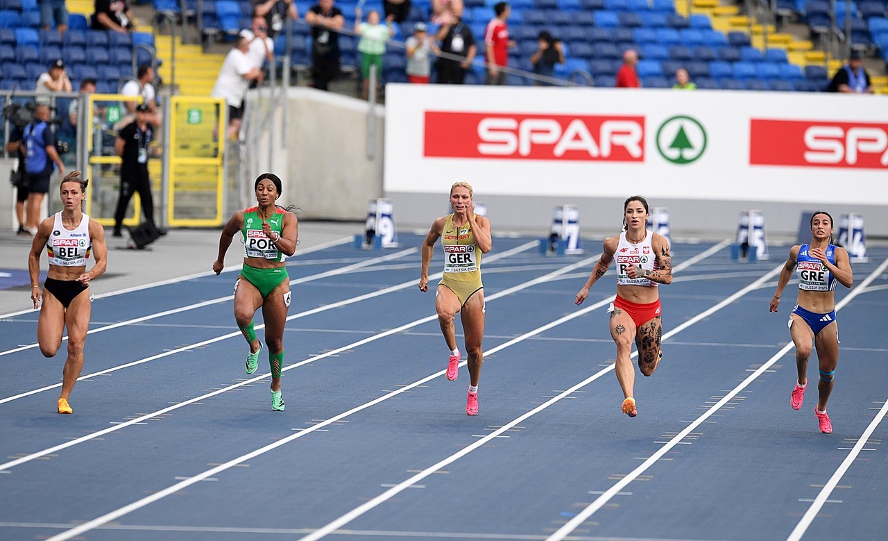 100 Meter: Bei sechzehn Starterinnen musste das Feld in einen A und B-Lauf aufgeteilt werden. Lisa Mayer (Sprintteam Wetzlar) war mit ihrer „SB“ von 11,16 Sekunden natürlich für das schnellere Rennen gesetzt. Im B-Lauf hatte die Spanierin Jael Bestue gute 11,25 Sekunden vorgelegt. Es war jedoch klar, dass es zehn Minuten später deutlich schneller werden würde. Lisa Mayer hatte die fünfte Bahn, direkt neben der Top-Favoritin Ewa Swoboda. Die Polin kam auch bestens aus dem Block, zauberte in schnellen 11,09 Sekunden auch einen neuen „Meisterschafts-Rekord“ auf den blauen Tartanbelag und blieb nur um 0,06 Sekunden über ihrer Bestzeit.