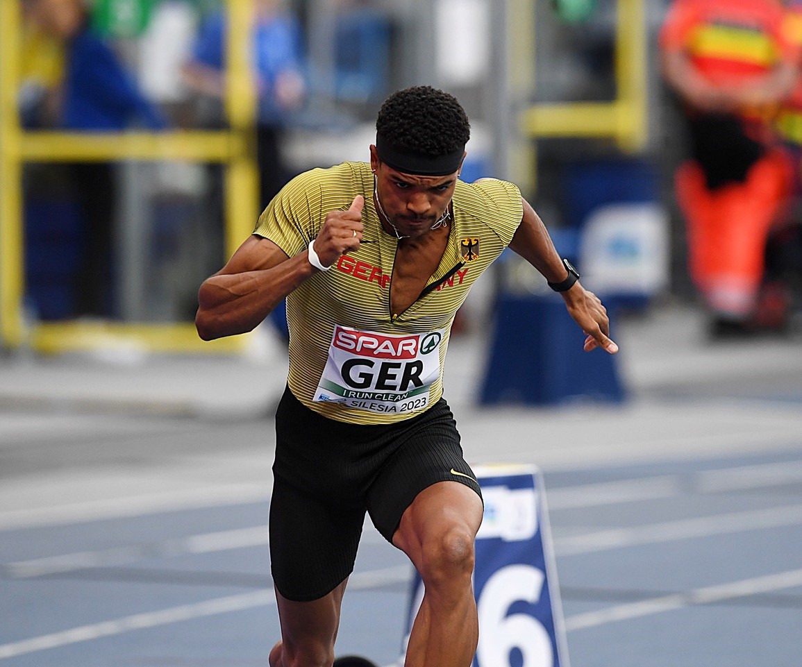 400 Meter Hürden: Eigentlich sah alles ganz normal aus. Joshua Abuaku kam mit den sieben weiteren Langhürdlern des A-Laufes ins Stadion um machte sich final warm. Ein paar kurze Antritte, ein Start aus dem Block und lockere Steigerungen. Nach dem Startschuss kam der Mann von Eintracht Frankfurt auch bis zur ersten Hürde, lief aber an ihr rechts vorbei. Somit war das Rennen vorzeitig beendet. „Germany - 0 points“ stand in den Ergebnislisten.