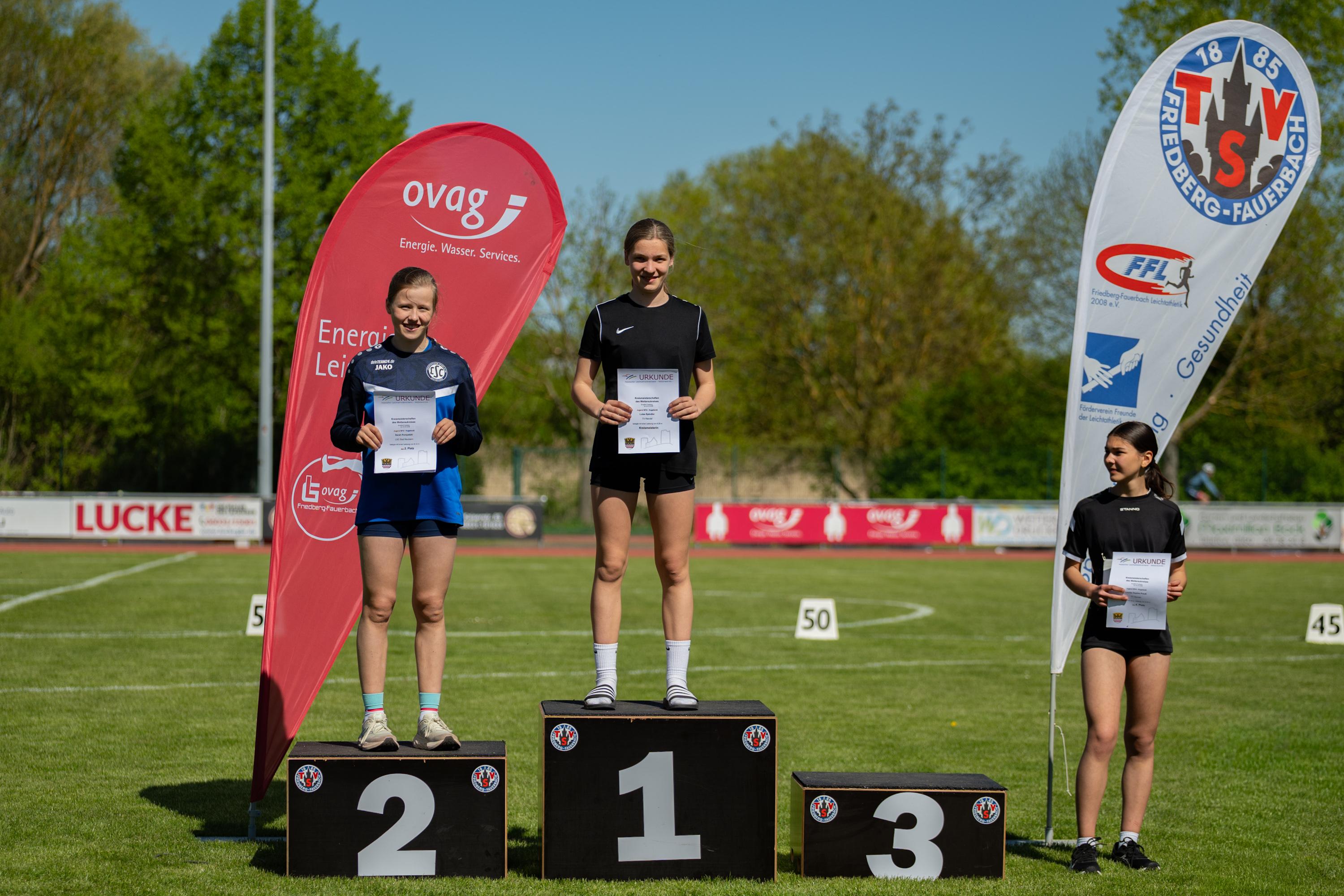 Bei den Kreismeisterschaften in den technischen Disziplinen und den Hürden der U18 und U16 sicherten sich vier Athleten jeweils drei Titel: Julia Bungic vom TV Rendel in der W15, Keanu Liam Ludwig vom TV Echzell in der mU18, Aaron Lukas Pompetzki vom LSC Bad Nauheim in der M15 und Konstantin Pötzsch vom L-Team Butzbach in der M14.
