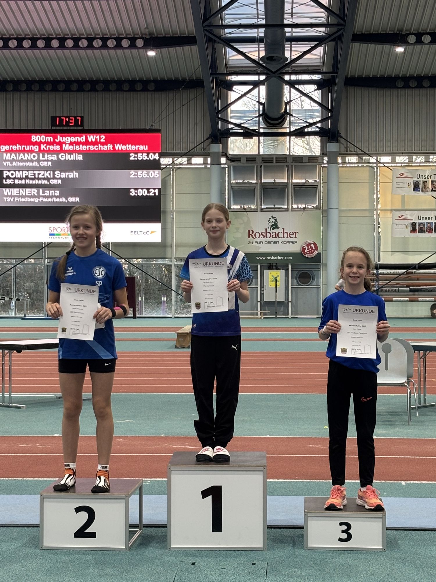 800 m: 1. Lisa Giulia Maiano (VfL Altenstadt) 2:55,04 min.