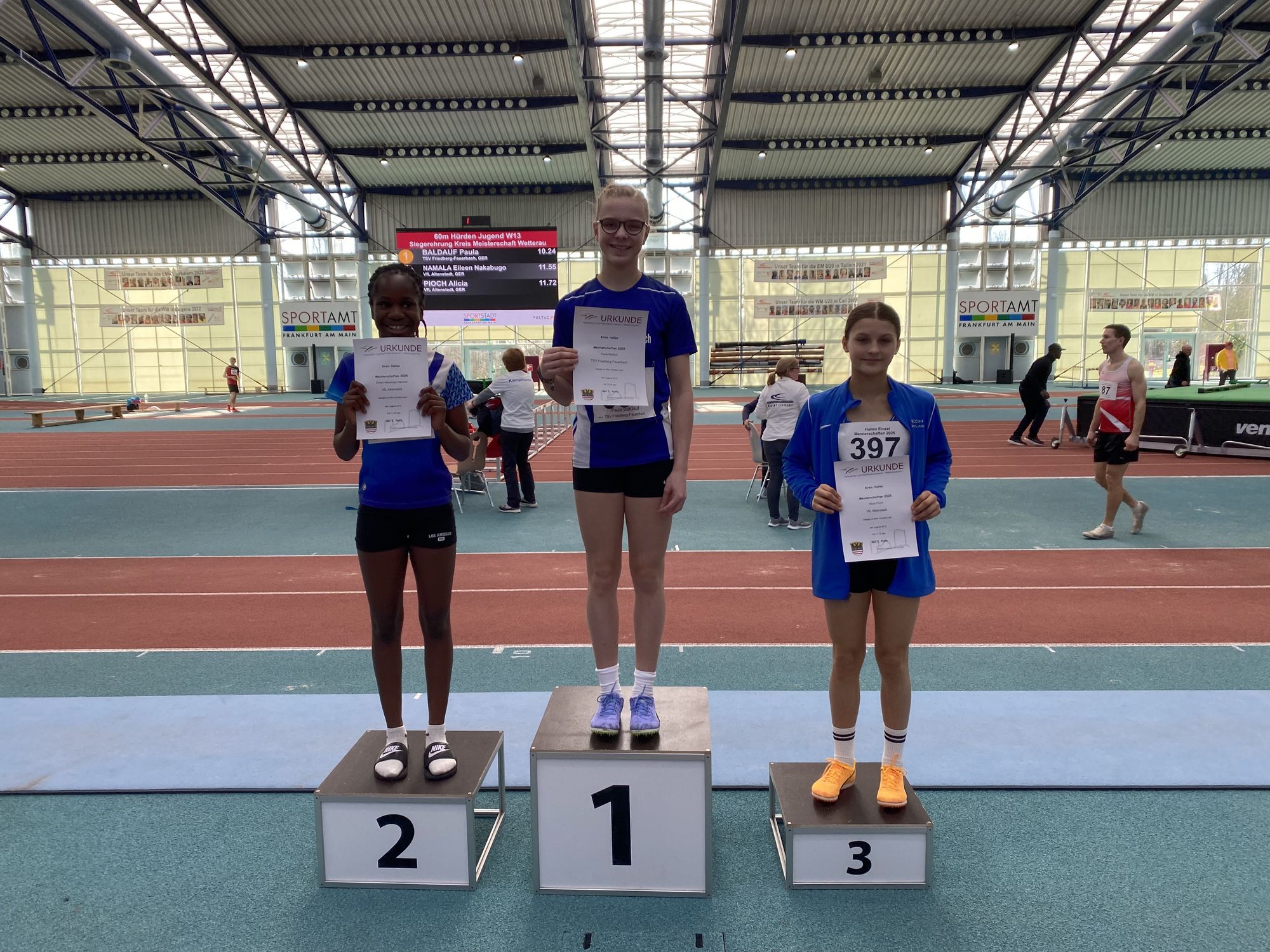 60 m Hürden: 1. Paula Baldauf (TSV Friedberg-Fauerbach) 10,24 sec.