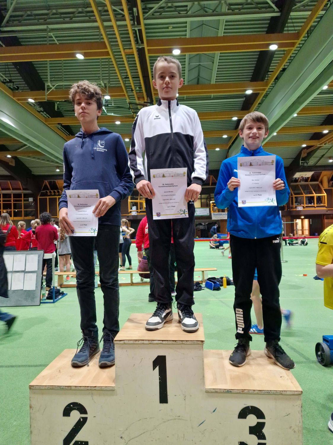 Nachdem sich Tag eins mit Verzögerungen langgezogen hatte, startete Wettkampftag zwei umso früher. Ben Stöber (TV Wetzlar) und seine Konkurrenten eröffneten mit dem Weitsprung der M12 das Wettkampfgeschehen. Mit 4,24m und Platz zwei nahm Stöber nicht nur eine neue Bestmarke, sondern auch sein erstes von insgesamt drei XXL-Überraschungseiern, welches die Plätze eins bis vier bekamen, mit nach Hause. Auch im Hochsprung sprang mit 1,30m der Silberrang heraus, den Abschluss gab es mit 2:42,52min über die 800 Meter (Platz drei). Im selben Lauf schaffte es Jannis Bender von der LG Langgöns/Oberkleen in einem selbstbestimmten Rennen auf den Goldrang. Mit 2:28,36min kam er außerdem um eine Sekunde an seine Bestleistung aus dem Herbst heran.