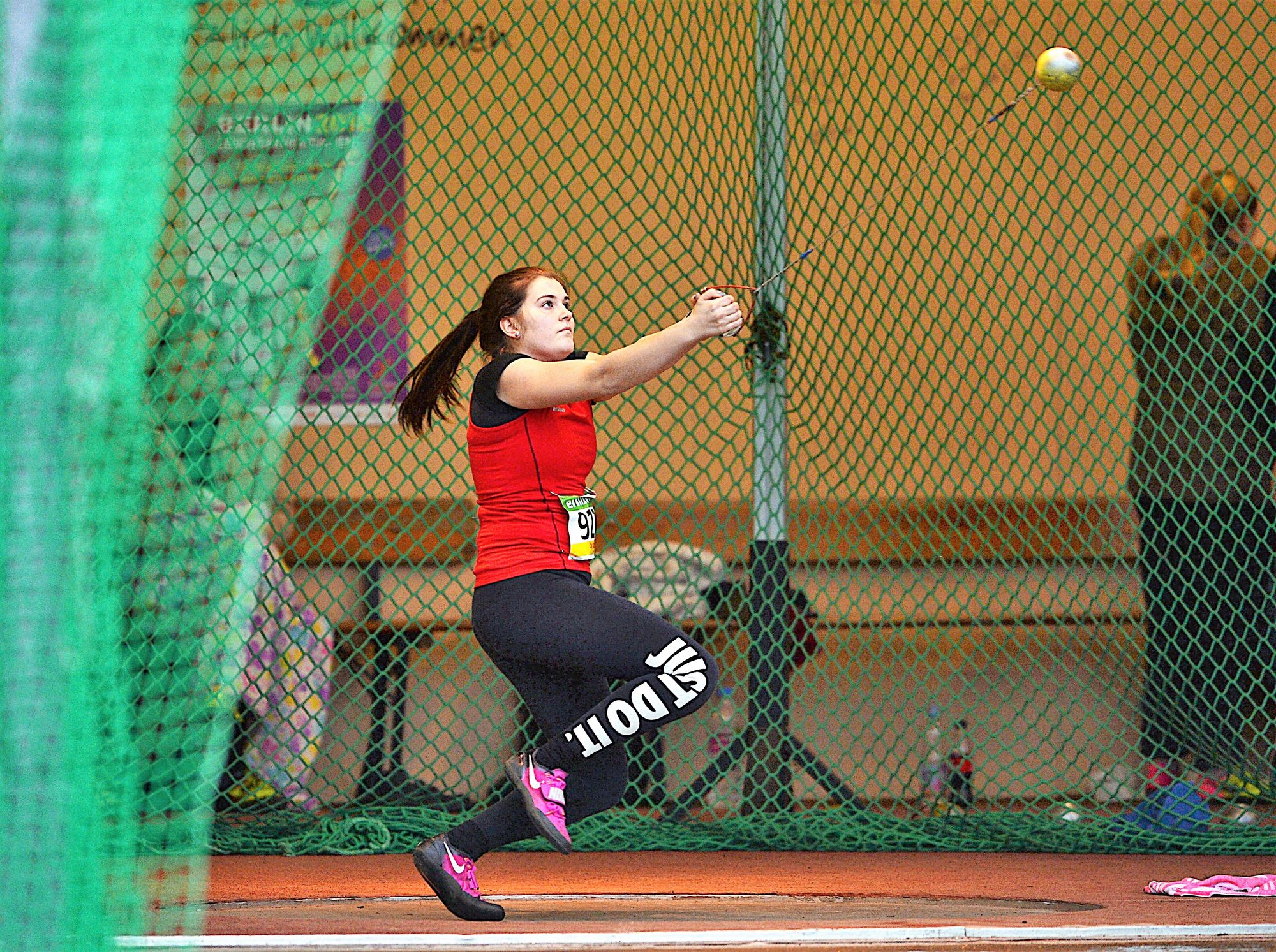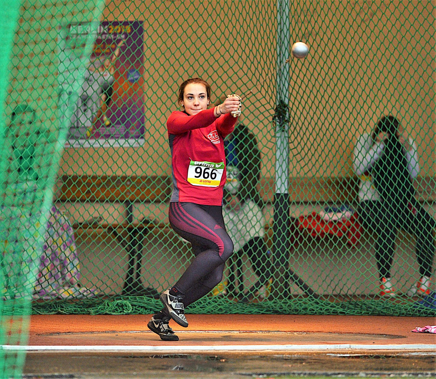 Im Hammerwurf der Männer setzte sich Christoph Gleixner (LG Eintracht Frankfurt) durch. Der Adlerträger warf sein 7,26 Kilogramm schweres Sportgerät gute 62,39 Meter weit. Gleixner, noch der Juniorenklasse angehörig, setzte sich damit an die Spitze der deutschen Jahresbestenliste und ist somit ein Anwärter auf einen Startplatz beim „European Throwing Cup“ am 9./10. März in Samorin (Slowakei). Zweiter wurde Konstantin Steinfurth (LG Eppstein-Kelkheim/60,29). Bei den Frauen lagen zwei U20-Jugendliche vorne. Victoria Sade Adu (LG Eintracht Frankfurt) setzte sich mit 53,39 Metern gegen Laura Siegel (TuS Weilmünster/51,16) durch.